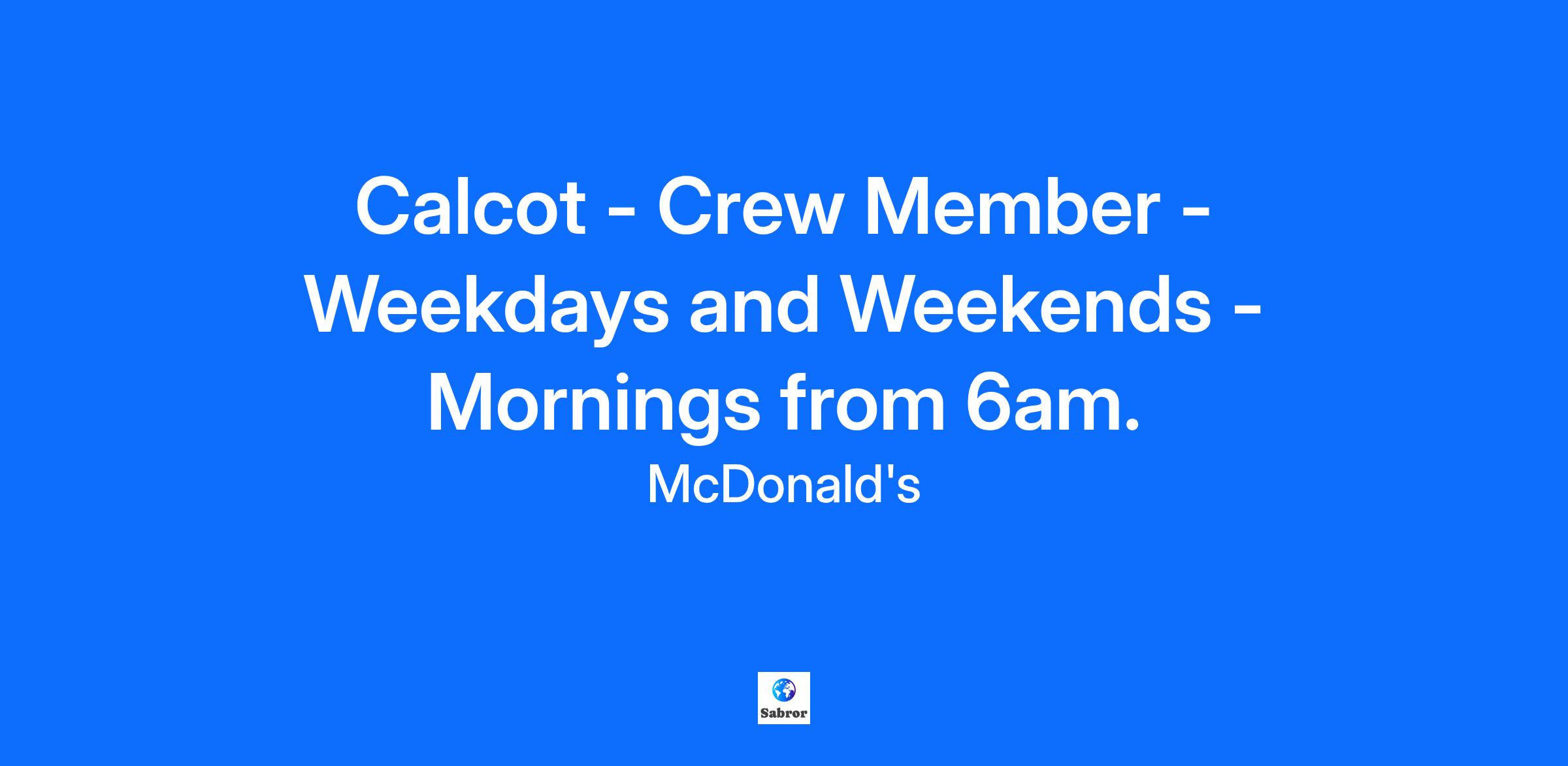 Calcot - Crew Member - Weekdays and Weekends - Mornings from 6am.