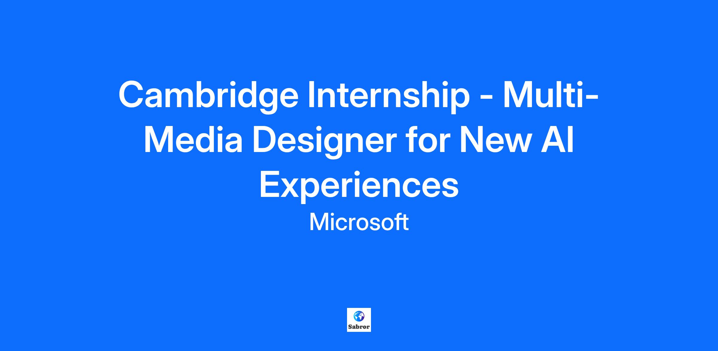 The successful candidate will design envisionments - such as storyboards or videos - that showcase how people can use their personal data archives to curate, collaboratively create, and interactively explore AI-enabled media content focused on personal and collective memories. A core part of the role involves conducting interviews and/or workshops with diverse participants to uncover user needs, inspire use cases, and understand values and aspirations related to memory and storytelling experiences. The position values openness to learning, creativity, and a forward-thinking approach to technology and design. It offers a unique opportunity to drive forward innovative design work in partnership with a multi-disciplinary team, contributing to the development of next-generation AI experiences. Our culture is centered on embracing a growth mindset and encouraging teams and leaders to bring their best each day. Join us and help shape the future of the world. Currently enrolled in a Masters or PhD program in multi-media design, HCI/UX, digital media, or creative storytelling Media editing skills as demonstrated through a strong design portfolio Experience in conducting user research (e.g., interviews, workshops) to engage participants and imagine new technology experiences Ability to turn abstract ideas into compelling visual stories or develop storyboards Strong communication skills and openness to collaborating across disciplines Experience using/adapting AI models and understanding requirements for AI data curation (e.g., data annotations) Familiarity with coding, or a strong motivation to develop technical skills Experience training machine-learning models Previous experience working in a multi-disciplinary team with diverse skill sets Interest in value-sensitive design/ responsible innovation in AI