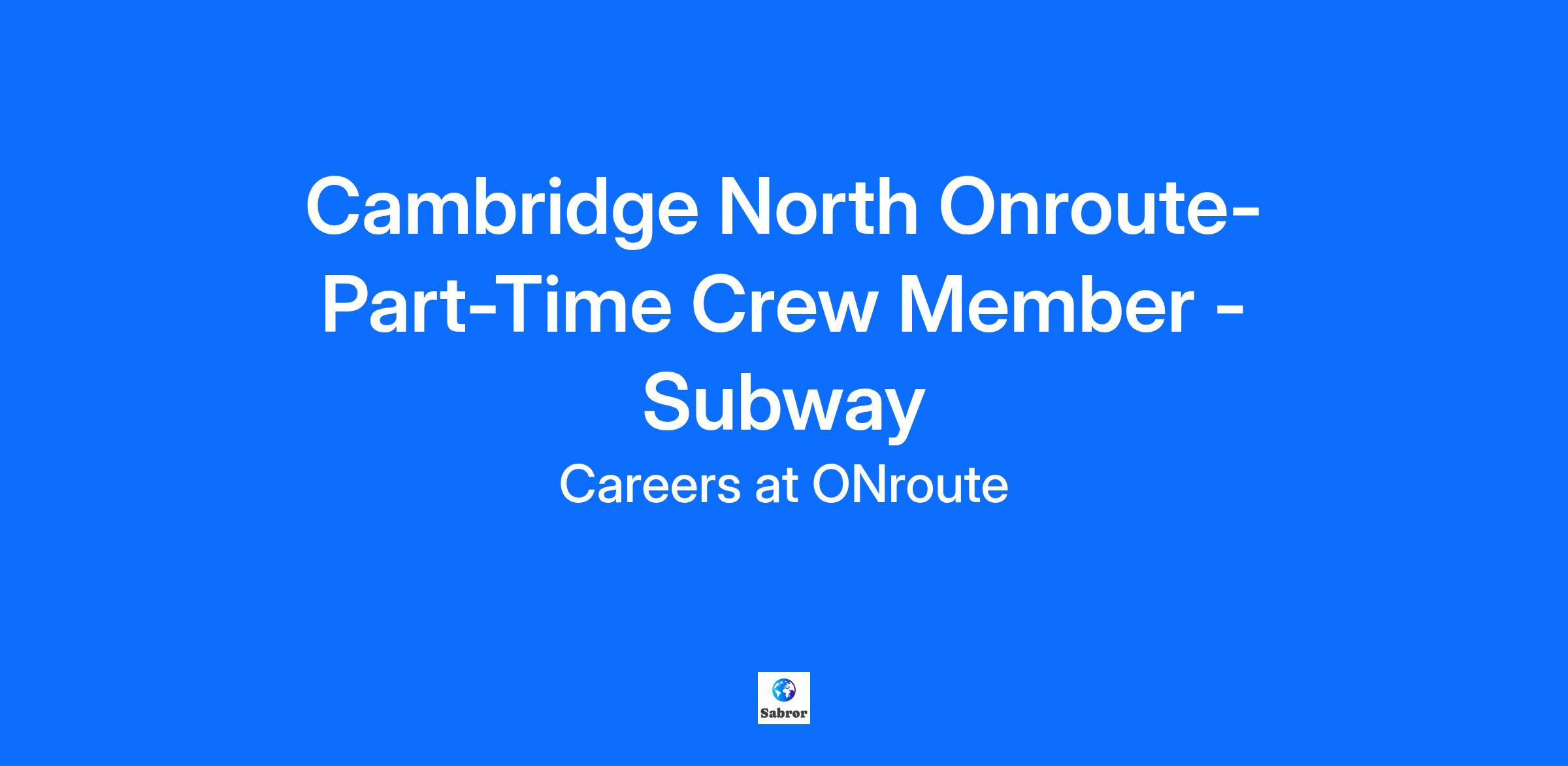 Cambridge North Onroute- Part-Time Crew Member - Subway