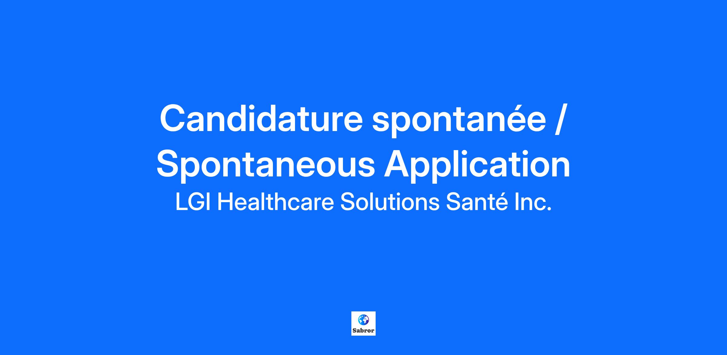 Company DescriptionWith 40 years of expertise, LGI Healthcare Solutions develops technological solutions for the healthcare network. We specialize in providing solutions for clinical, financial and material management, performance and analysis, and workforce management, which includes payroll management. Innovation is at the heart of our activities and we partner with our customers to solve crucial issues and ensure the well-being of patients and all members of the health sector. Today, our solutions support 320,000 healthcare professionals and over 6 million patients.At LGI Healthcare Solutions, we value diversity and equal access to employment for all. Should you require specific assistance during the recruitment and integration process, don’t hesitate to let us know. It will be our pleasure to accommodate you while respecting the confidentiality of your personal information.Job DescriptionInterested in joining LGI Healthcare Solutions, but none of our posted positions match your interests? Whether you're at the beginning, middle, or end of your career, we welcome your spontaneous application.We're always on the lookout for talented people to join our ranks, so we can innovate and develop technological solutions for our customers to optimize patient care. Our Talent Acquisition team will be delighted to contact you if one of our future opportunities matches your profile.Additional InformationHere are the many benefits to ensure your personal and professional well-being as well as financial health: Remote, in-office, or hybrid work, with the option of flexible hours to promote balance and performance Group insurance plan and group RRSP with employer participation in effect from day one Minimum of 3 weeks vacation + 5 days personal leave per year Access to a telemedicine service and a complete assistance program for all employees and their family Access to a leading e-learning platform and hours allocated for training and professional developmentMore than 40 years of expertise in the health IT field opens the door to many career opportunities Projects integrating Agile methodology Employee discount program An organizational culture rooted in the values of courage, determination, excellence, and collaboration around which we come together to develop technology solutions for the healthcare field.