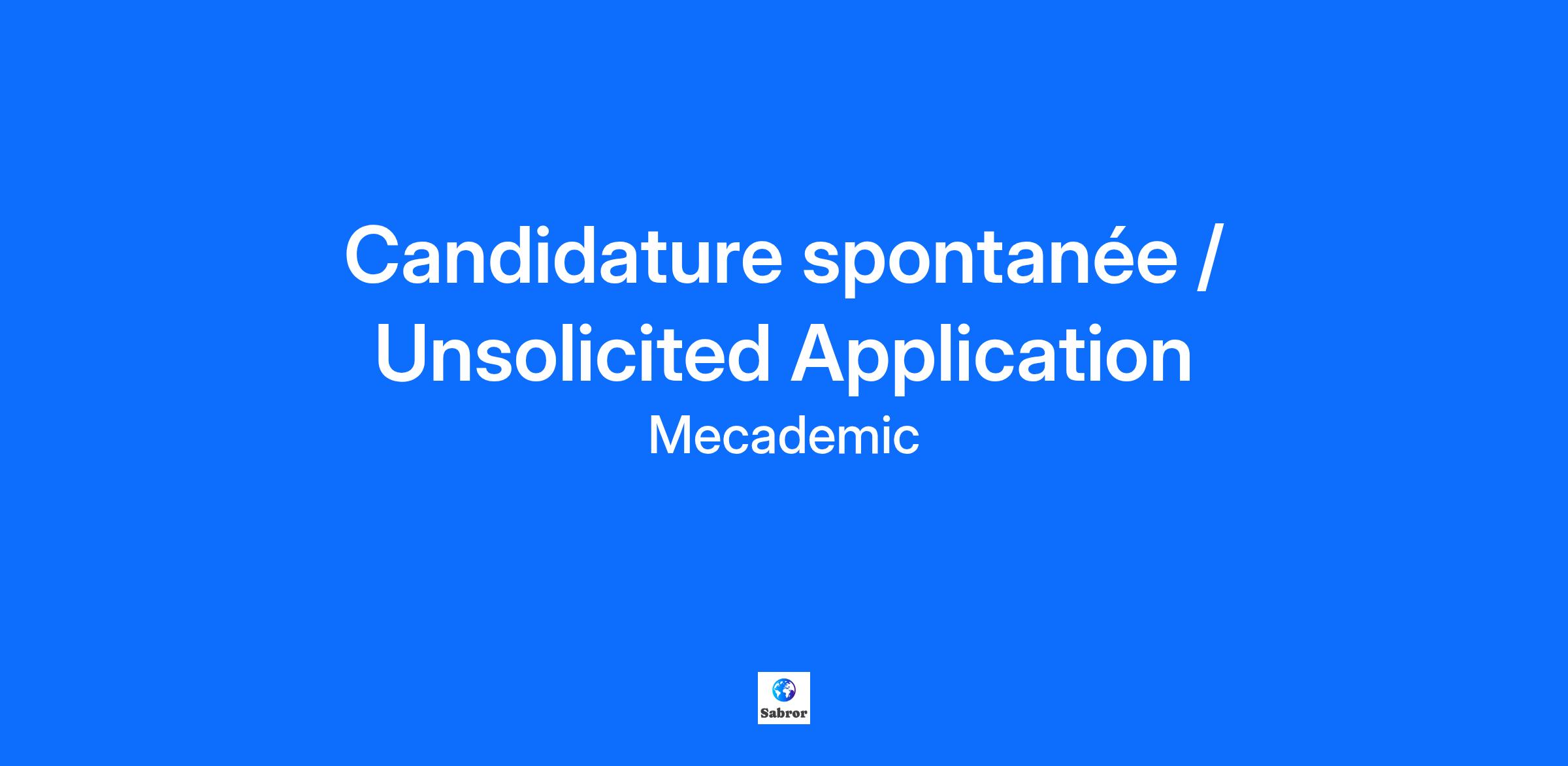 Candidature spontanée / Unsolicited Application