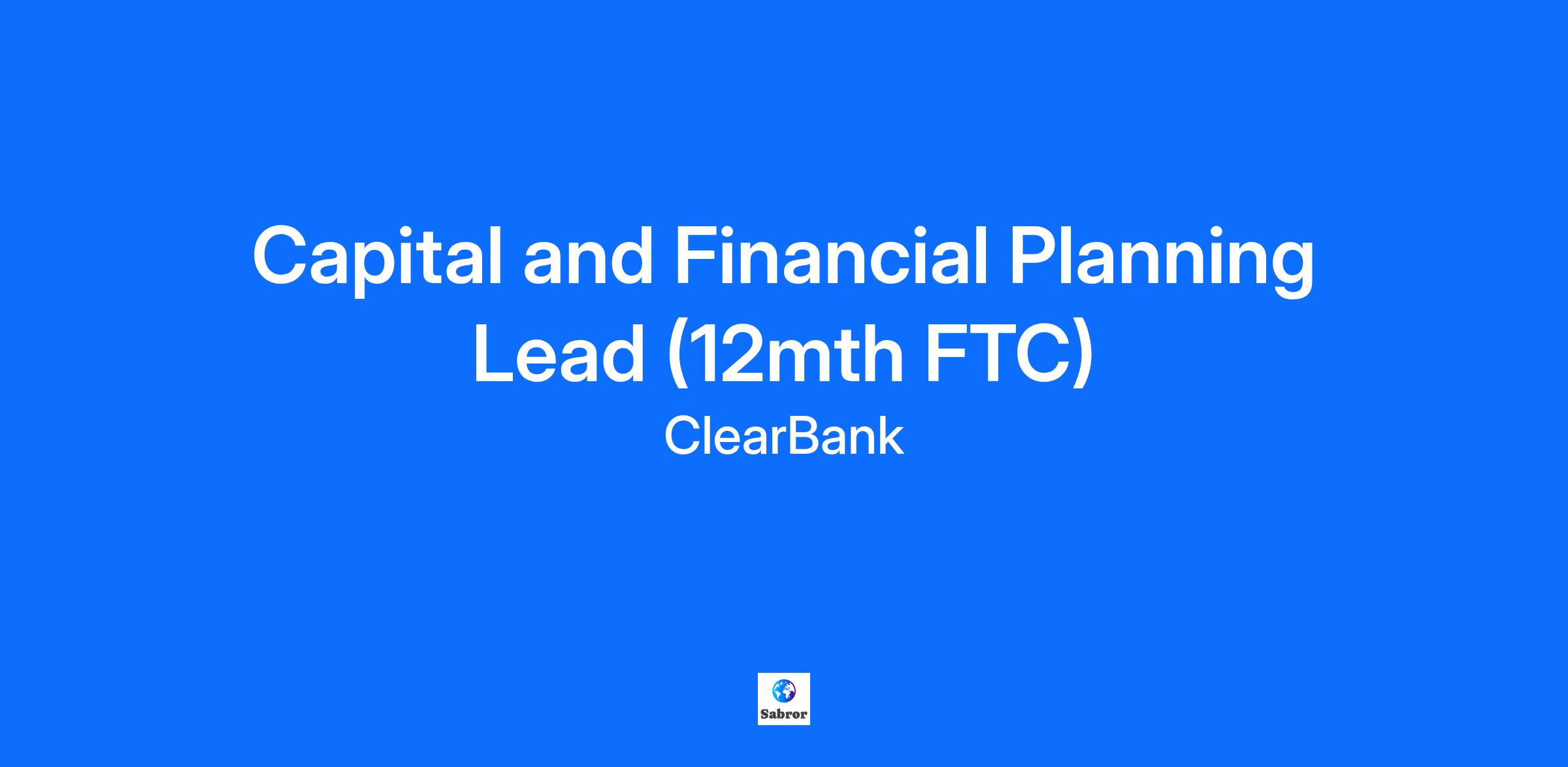 Capital and Financial Planning Lead (12mth FTC)
