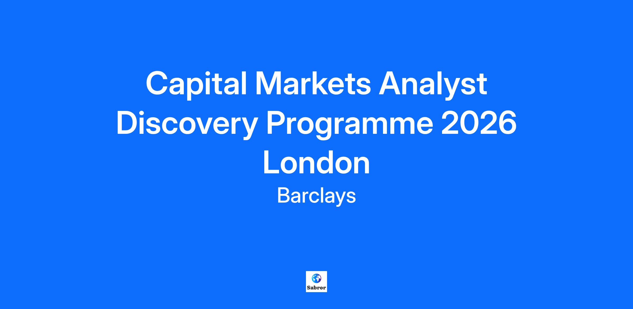 Job Description The Discovery Programme is an amazing opportunity for students, who are 2 years out from graduation, to be assessed for, and to apply to join, our Summer Internships in 2027 before anyone else. It’s the chance to learn about a career at Barclays, the chance to find out a lot about the business world and to discover a bit about yourself. And, as you’ll gain a good understanding of the full selection of roles and opportunities we offer, it’s a perfect stepping stone to one of our 10-week internships. Capital Markets Every day, corporations worldwide come to Barclays for our banking expertise. We help drive global commerce by providing comprehensive financial, advisory and capital-raising services. Our bankers advise on everything from privatisations and mergers and acquisitions to debt and equity financings and restructuring. Capital Markets is organised into several specialist areas covering equity and debt origination, loans, structuring, risk management and syndication. What you can expect Programme Dates: April 14th – 15th 2026 In-person programme. Join seminars and workshops, where you’ll learn about financial services, your chosen business area, the recruitment process and Barclays as an employer. Participate in specific breakout sessions for your business area, where you'll gain insights of what you can expect from the Summer Internship in 2027. Build your understanding of the assessment process and next steps. Connect with people from across our business, including current graduates who have already made the journey that you are starting out on. Attend dedicated networking sessions with senior leaders and graduates aligned to your chosen business area. On the 2nd day of the programme, you can be assessed for the 2027 summer internship by taking part in a series of assessments. What we look for You are 2 years out from graduation. You can be studying any degree discipline. You are curious to understand how a global bank adapts in a constantly evolving environment. We are recruiting on a rolling basis, so we recommend that students apply early. Barclays does not provide sponsorship to attend the 2-day insight programme. Please note however that following the 2-day insight programme, if you are successful in securing a 2027 Summer Internship, Barclays will apply for a skilled worker visa for you to provide you with the legal right to work for the duration of the 2027 Summer Internship Programme. Any offer made to you for the 2027 Summer Internship Programme will be conditional upon you meeting the Home Office eligibility requirements for a skilled worker visa. It is the policy of Barclays to ensure equal employment opportunity without discrimination or harassment on the basis of race, color, creed, religion, national origin, alienage or citizenship status, age, sex, sexual orientation, gender identity or expression, marital or domestic/civil partnership status, disability, protected veteran status, genetic information, or any other basis protected by law. . Our Work Experience is the combination of everything that's unique about us: our culture, our core values, our company meetings, our commitment to sustainability, our recognition programs, but most importantly, it's our people. Our employees are self-disciplined, hard working, curious, trustworthy, humble, and truthful. They make choices according to what is best for the team, they live for opportunities to collaborate and make a difference, and they make us the #1 Top Workplace in the area.