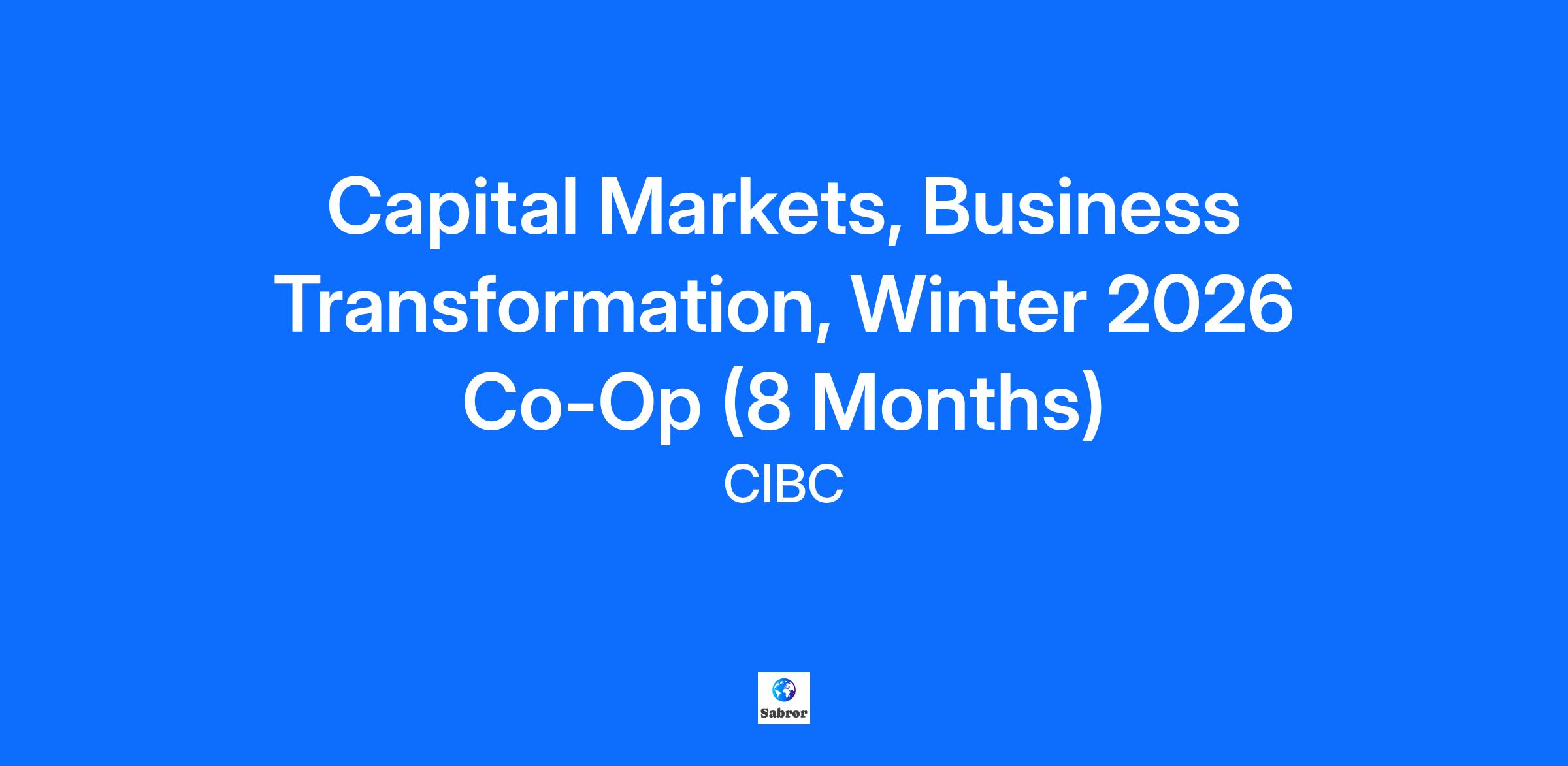 We’re building a relationship-oriented bank for the modern world. We need talented, passionate professionals who are dedicated to doing what’s right for our clients. At CIBC, we embrace your strengths and your ambitions, so you are empowered at work. Our team members have what they need to make a meaningful impact and are truly valued for who they are and what they contribute. To learn more about CIBC, please visit CIBC.com What you’ll be doing The goal of CIBC’s Capital Markets business is to be the premier client-focused Capital Markets provider based in Canada. To deliver on this, the capital markets arm of CIBC provides a wide range of credit, capital markets, investment banking, merchant banking and research products and services to government, institutional, corporate and retail clients in Canada and in key markets around the world. The CSDM Business Transformation team is responsible for managing project and change management activities encompassing all aspects of KYC/AML, regulatory compliance, data management, and enterprise initiatives, client data and account remediation initiatives primarily related to domestic and international regulatory reporting. The team conducts its activities through internal and external research and interaction with numerous stakeholders including, Salespeople & Relationship Managers, Legal Documentation, Credit, Operations teams. As a Co-op Student reporting to the Director of CSDM Business Transformation, you will support data quality and remediation activities, business analysis, and testing processes related to Capital Markets products for Corporate and Institutional clients. Your role will involve executing tasks across multiple applications to ensure that our clients have accurate mandatory data on file to meet regulatory reporting requirements. At CIBC we enable the work environment most optimal for you to thrive in your role. You’ll have the flexibility to manage your work activities within a hybrid work arrangement where you’ll spend 1-3 days per week on-site, while other days will be remote. Important information You are enrolled in a post-secondary program in a STEM (Science, Technology, Engineering or Mathematics), Business, Economics or related program at the time of the work term, with a graduation date of December 2026 or later. Include your resume, cover letter, and your most recent unofficial transcript with your application. These should all be uploaded into the resume section of your application in a PDF format. Location: Toronto. Duration of Work Term: 8 months (January 2026 – August 2026). Applications are being reviewed on a rolling basis, we encourage you to apply as soon as possible. How you’ll succeed Technology Design & Implementation – Participate as part of a larger Business Transformation team, along with the Technology Department, and Business Stakeholders, to develop and implement new technologies as part of an ever-changing regulatory reporting environment. Testing Support - Assist in User Acceptance Testing (UAT), system configuration testing, and other testing activities to ensure data integrity and compliance. Process Execution – Execute a variety of lightly to moderately complex processes to ensure client data accuracy and compliance with regulatory requirements. Analyze data for specific product types and verify information across various platforms, ensuring due diligence and governance practices are followed. Collaboration - Work closely with your team to deliver exceptional client service for both internal and external clients. Pay attention to detail while navigating exception processes and collaborating with teammates to resolve issues. Learning & Development - Absorb knowledge from team members to gain process expertise and flexibility in executing various tasks. Your ability to learn quickly will be key to supporting complex processes and ad hoc cleanup jobs. Data Investigation - Conduct thorough data investigations and research activities, demonstrating resourcefulness and attention to detail during data analysis and remediation efforts. Change Management - Collaborate with Technology Partners and stakeholders to gather business requirements and support solution discussions. Participate in Agile Scrum teams to assist in sprint planning and refinement sessions. Who you are It’s an asset if you have familiarity with the Capital Markets business and the data involved with Investment/Asset Managers and Funds. Proficiently use Microsoft Office applications. You put our clients first. You engage with purpose to find the right solutions. You go the extra mile, because it's the right thing to do. You're motivated by collective success. You know that teamwork can transform a good idea into a great one. You know that an inclusive team that enjoys working together can bring a vision to life. You know that details matter. You notice things that others don't. Your critical thinking skills help to inform your decision making. You love to learn. You're passionate about growing your knowledge. You have a strong sense of curiosity. You're passionate about people. You find meaning in relationships and surround yourself with a diverse network of partners. You connect with others through respect and authenticity. Values matter to you. You bring your real self to work and you live our values - trust, teamwork, and accountability. What CIBC Offers At CIBC, your goals are a priority. We start with your strengths and ambitions as an employee and strive to create opportunities to tap into your potential. We work to recognize you in meaningful, personalized ways including a competitive compensation, a banking benefit*, wellbeing support and additional offers such as employee and family assistance programs and MomentMakers, our social, points-based recognition program. Our spaces and technological toolkit will make it simple to bring together great minds to create innovative solutions that make a difference for 