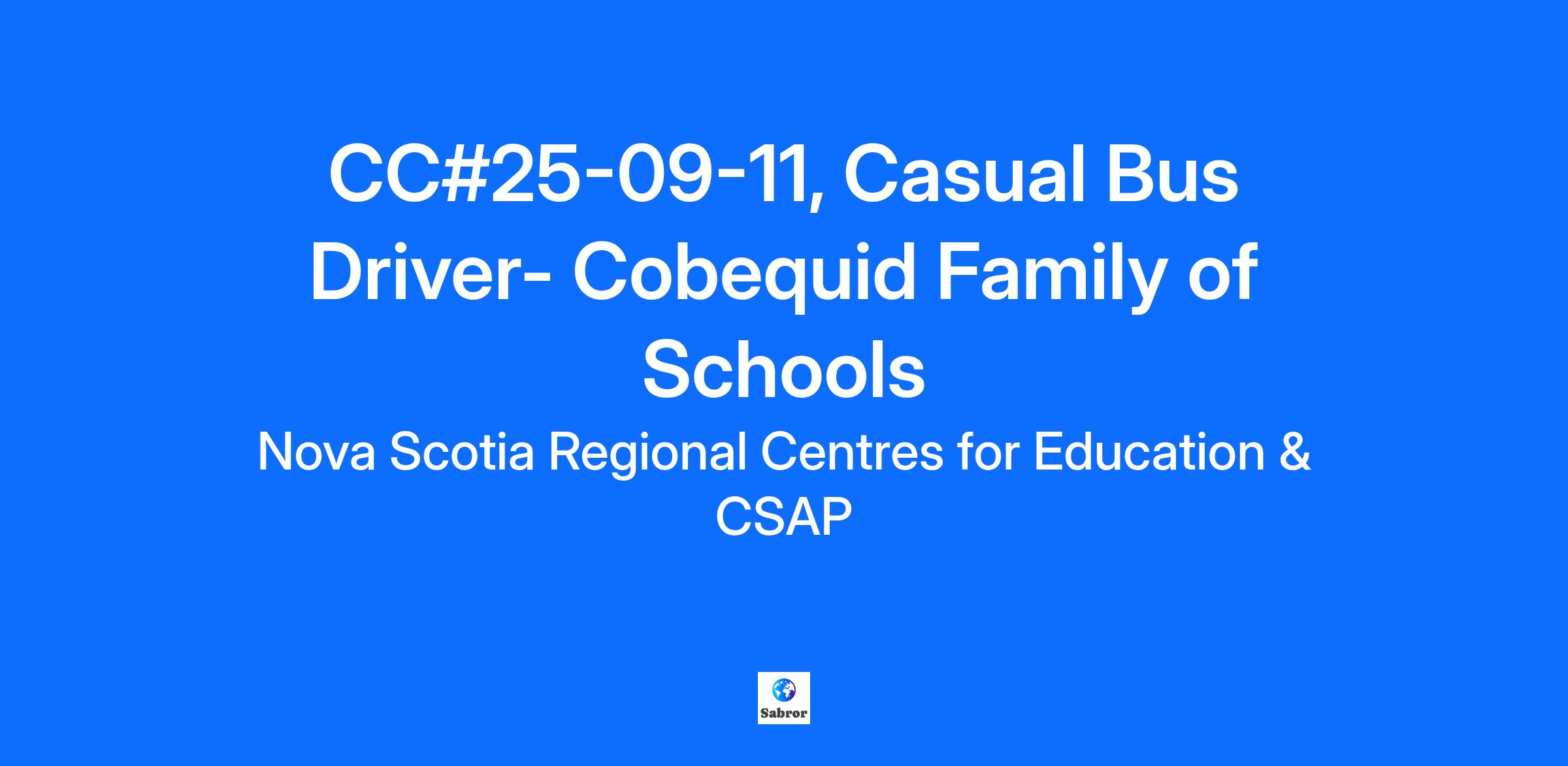 Casual Bus Driver Position Cobequid Family of Schools CC#25-09-11 The Chignecto-Central Regional Centre for Education invites applications for BUS DRIVERS for the Chignecto-Central Regional Centre for Education encompassing Colchester, East Hants, Pictou, and Cumberland Counties (Cobequid, Celtic, Nova and Chignecto Families of Schools). Casual as needed basis, with no guaranteed hours of work. Rate of Pay: $28.82/hr. as per the CCRCE/CUPE Collective Agreement. Minimum Requirements: Minimum of Grade 12 high school diploma or academic equivalent Diploma (GED). Must hold a valid Driver’s License, Class 2B with Air Certification; Provide a satisfactory Driver Abstract (obtained from the Registry of Motor Vehicles), as applicable. Run times vary by location, but start and end fall within the following times: Morning pick-up and drop-off of students; 6:30am to 9:30am approximately. Afternoon pick-up and drop-off of students 1:45pm to 4:45 pm approximately. Applicants with disabilities who require assistance during the hiring process may contact Employee Health at employeehealth@ccrce.ca or 902-896-5799 to request reasonable accommodations. All employees require a criminal record check of the vulnerable sector. The CCRCE requires an original check dated within six (6) months from your date of hire. If you are selected for hire you will be provided with a letter from the CCRCE to take your local Police/RCMP Detachment to have this check completed. All employees also require a child abuse register check. The CCRCE requires an original check dated within six (6) months from your date of hire. For more information on how to obtain a child abuse register please visit “Apply for a Child Abuse Register search – Government of Nova Scotia”. The criminal record check of the vulnerable sector along with the child abuse register check will be reviewed in accordance with the CCRCE policies and procedures. Note: Location of school bus parking as determined by the Centre for Education, bus runs/routes, and assignment of additional duties are subject to change at any time at the discretion of the employer. Where needed, prospective candidates will be required to successfully complete the Driver Training Program conducted by Pupil Transportation staff before commencing employment in any Bus Driver position. *Please note, only candidates selected for an interview will be contacted.
