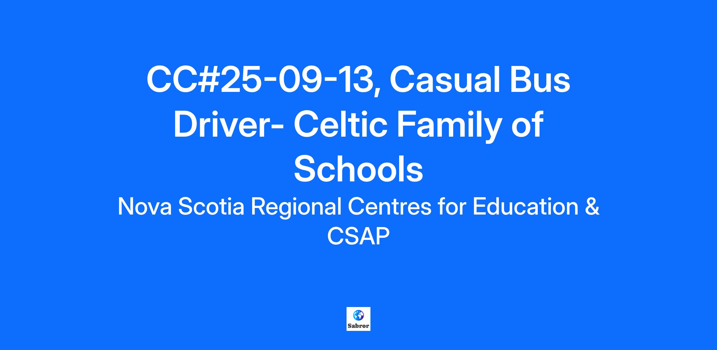 Casual Bus Driver Position Celtic Family of Schools CC#25-09-13 The Chignecto-Central Regional Centre for Education invites applications for BUS DRIVERS for the Chignecto-Central Regional Centre for Education encompassing Colchester, East Hants, Pictou, and Cumberland Counties (Cobequid, Celtic, Nova and Chignecto Families of Schools). Casual as needed basis, with no guaranteed hours of work. Rate of Pay: $28.82/hr. as per the CCRCE/CUPE Collective Agreement. Minimum Requirements: Minimum of Grade 12 high school diploma or academic equivalent Diploma (GED). Must hold a valid Driver’s License, Class 2B with Air Certification; Provide a satisfactory Driver Abstract (obtained from the Registry of Motor Vehicles), as applicable. Run times vary by location, but start and end fall within the following times: Morning pick-up and drop-off of students; 6:30am to 9:30am approximately. Afternoon pick-up and drop-off of students 1:45pm to 4:45 pm approximately. Applicants with disabilities who require assistance during the hiring process may contact Employee Health at employeehealth@ccrce.ca or 902-896-5799 to request reasonable accommodations. All employees require a criminal record check of the vulnerable sector. The CCRCE requires an original check dated within six (6) months from your date of hire. If you are selected for hire you will be provided with a letter from the CCRCE to take your local Police/RCMP Detachment to have this check completed. All employees also require a child abuse register check. The CCRCE requires an original check dated within six (6) months from your date of hire. For more information on how to obtain a child abuse register please visit “Apply for a Child Abuse Register search – Government of Nova Scotia”. The criminal record check of the vulnerable sector along with the child abuse register check will be reviewed in accordance with the CCRCE policies and procedures. Note: Location of school bus parking as determined by the Centre for Education, bus runs/routes, and assignment of additional duties are subject to change at any time at the discretion of the employer. Where needed, prospective candidates will be required to successfully complete the Driver Training Program conducted by Pupil Transportation staff before commencing employment in any Bus Driver position. *Please note, only candidates selected for an interview will be contacted.