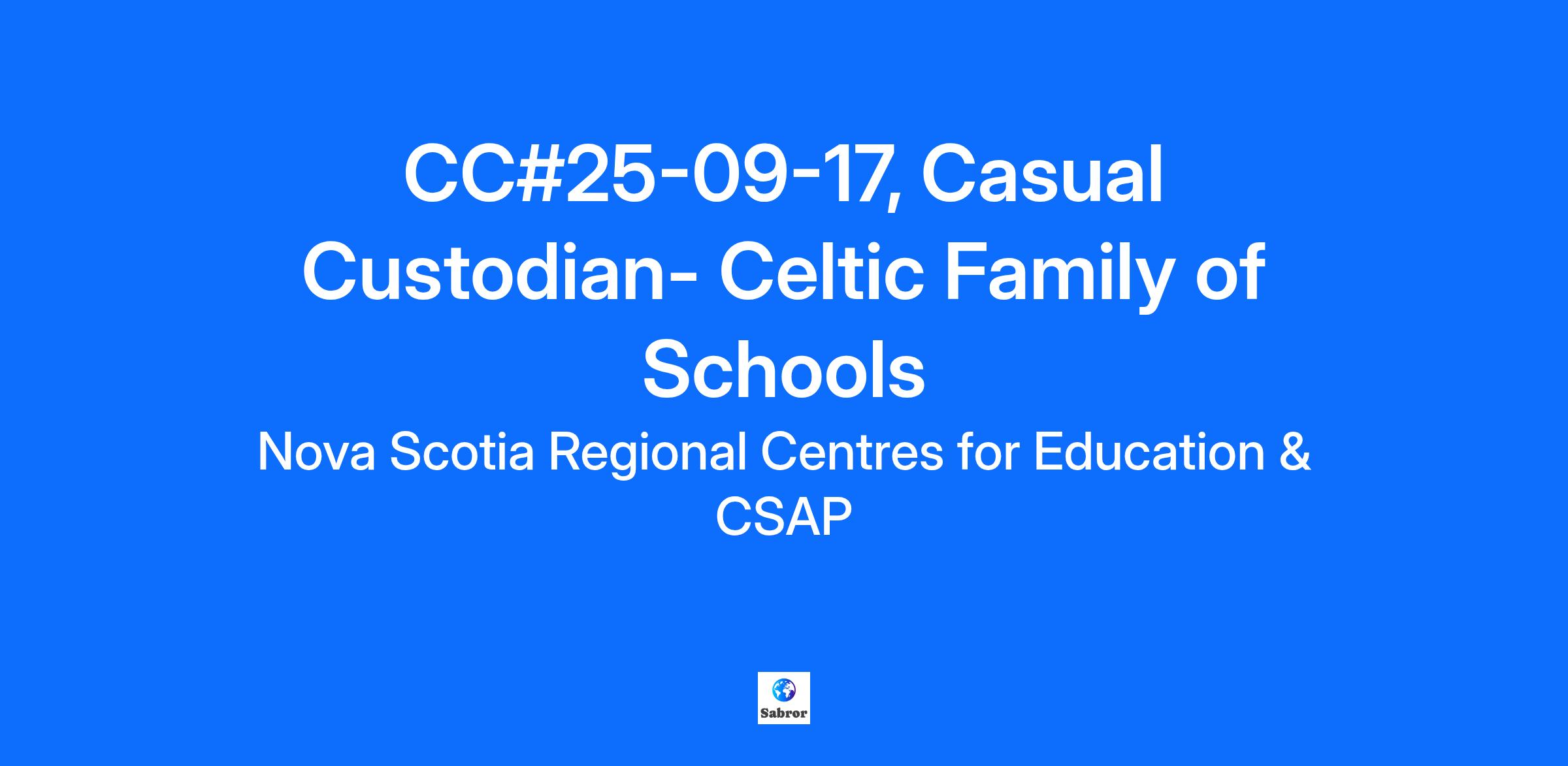 Casual Custodian Position Celtic Family of Schools CC#25-09-17 The Chignecto-Central Regional Centre for Education invites applications from new applicants for TEMPORARY CUSTODIANS for the Chignecto-Central Regional Centre for Education encompassing Colchester, East Hants, Pictou, and Cumberland Counties (Cobequid, Celtic, Nova and Chignecto Families of Schools). Placement in temporary positions could lead to permanent employment. As this position is casual in nature, there are no guaranteed hours of work. Rate of Pay: $24.68/hr. as per the CCRCE/CUPE Collective Agreement Requirements: Minimum of Grade 12 high school diploma or academic equivalent through educational programs such as Graduated Equivalent Diploma (GED) Possess a valid N.S. Driver’s License; Experience/knowledge in modern cleaning methods, materials, and equipment would be a definite asset; Have or be willing to take WHMIS, first aid training, etc. Be able to provide their own transportation to and from work sites Applicants with disabilities who require assistance during the hiring process may contact Employee Health at employeehealth@ccrce.ca or 902-896-5799 to request reasonable accommodations. All employees require a criminal record check of the vulnerable sector. The CCRCE requires an original check dated within six (6) months from your date of hire. If you are selected for hire you will be provided with a letter from the CCRCE to take your local Police/RCMP Detachment to have this check completed. All employees also require a child abuse register check. The CCRCE requires an original check dated within six (6) months from your date of hire. For more information on how to obtain a child abuse register please visit “Apply for a Child Abuse Register search – Government of Nova Scotia”. The criminal record check of the vulnerable sector along with the child abuse register check will be reviewed in accordance with the CCRCE policies and procedures. Note Prospective candidates will be required to successfully complete the Custodial Training Program conducted by Property Services Staff before commencing employment in any custodial position. *Please note, only candidates selected for an interview will be contacted.