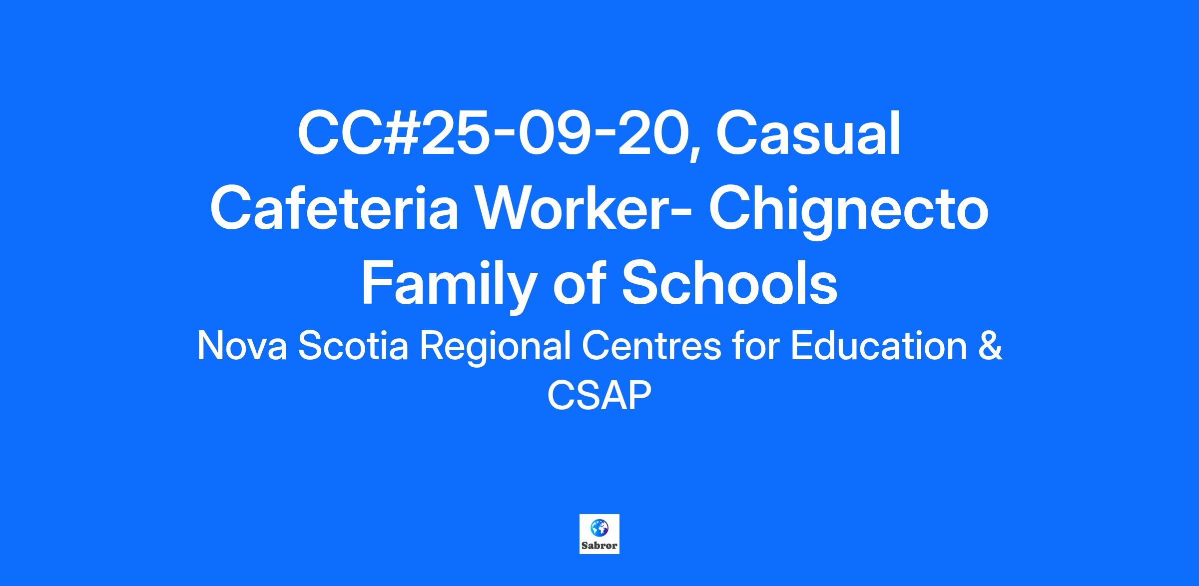 Casual Cafeteria Worker Position Chignecto Family of Schools CC#25-09-20 The Chignecto-Central Regional Centre for Education is accepting applications for the 2025-2026 school year for the Casual Cafeteria Worker list. Casual Cafeteria Workers work on-call in the schools they are interested in throughout CCRCE. Cafeteria Workers are responsible for: Preparing and serving food from scratch for school food programs, primarily the lunch program Performing kitchen duties such as maintaining food safety logs (e.g. temperature checks), washing dishes, collecting and removing compost, recyclables and garbage, cleaning and organizing work areas, equipment, services stations and floors Restocking supplies as required Rate of Pay: $20.60/hour Requirements to work as a Casual Cafeteria Worker: Completion of a culinary course preferred Experience directly related to the duties and responsibilities specified. Completion of food safety training program (or willingness to complete upon offer of employment). Able to perform physically strenuous duties of the position, including heavy lifting (possibly up to 50 lb), walking and/or standing for the majority of each shift, and working in an environment with heat fluctuations. Availability for early morning shift start times as required. Valid NS Driver's license and access to a reliable vehicle. Additional Assets Excellent people skills, with the ability to interact with people of all ages and from diverse backgrounds Strong time-management skills. Applicants with disabilities who require assistance during the hiring process may contact Employee Health at employeehealth@ccrce.ca or 902-896-5799 to request reasonable accommodations. All employees require a criminal record check of the vulnerable sector. The CCRCE requires an original check dated within six (6) months from your date of hire. If you are selected for hire you will be provided with a letter from the CCRCE to take your local Police/RCMP Detachment to have this check completed. All employees also require a child abuse register check. The CCRCE requires an original check dated within six (6) months from your date of hire. For more information on how to obtain a child abuse register please visit “Apply for a Child Abuse Register search – Government of Nova Scotia”. The criminal record check of the vulnerable sector along with the child abuse register check will be reviewed in accordance with the CCRCE policies and procedures. *Please note, only candidates selected for an interview will be contacted