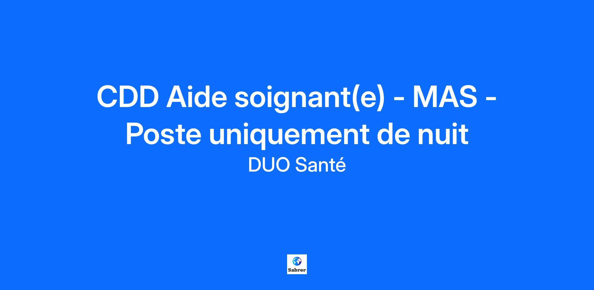 🧑‍⚕️ Aide-Soignant(e) – CDD 4 mois – MAS proche Colmar 📅 CDD à pourvoir dès que possible – Durée : 4 mois (possibilité de renouvellement puis CDI) 🕒 Horaires uniquement de nuit Vous souhaitez évoluer dans un cadre bienveillant, au sein d’une équipe investie et dans de bonnes conditions de travail ? Rejoignez une Maison d’Accueil Spécialisée (MAS) accueillant des adultes en situation de handicap, médicalisée et chaleureuse, proche de Colmar. 💡 Le poste Intégré(e) à une structure de 30 lits (dont 2 temporaires), vous participez activement à l'accompagnement quotidien des résidents dans le respect de leur dignité et de leur autonomie : Soins d’hygiène, de confort et de prévention Participation à la vie de l’établissement et aux projets personnalisés Travail en équipe pluridisciplinaire Contribution au maintien du lien social et à la qualité de vie des résidents ✅ Ce que nous offrons Une ambiance d’équipe conviviale et solidaire Un environnement médicalisé stable et bien équipé Un établissement relevant de la fonction publique hospitalière Une organisation bienveillante avec un encadrement à l’écoute 🎯 Profil recherché Diplôme d’État d’Aide-Soignant(e) exigé Une première expérience en MAS ou dans le secteur médico-social est un plus Bienveillance, patience, esprit d’équipe et rigueur professionnelle 💬 Envie de donner du sens à votre quotidien ? Postulez dès maintenant pour rejoindre une structure humaine et engagée !