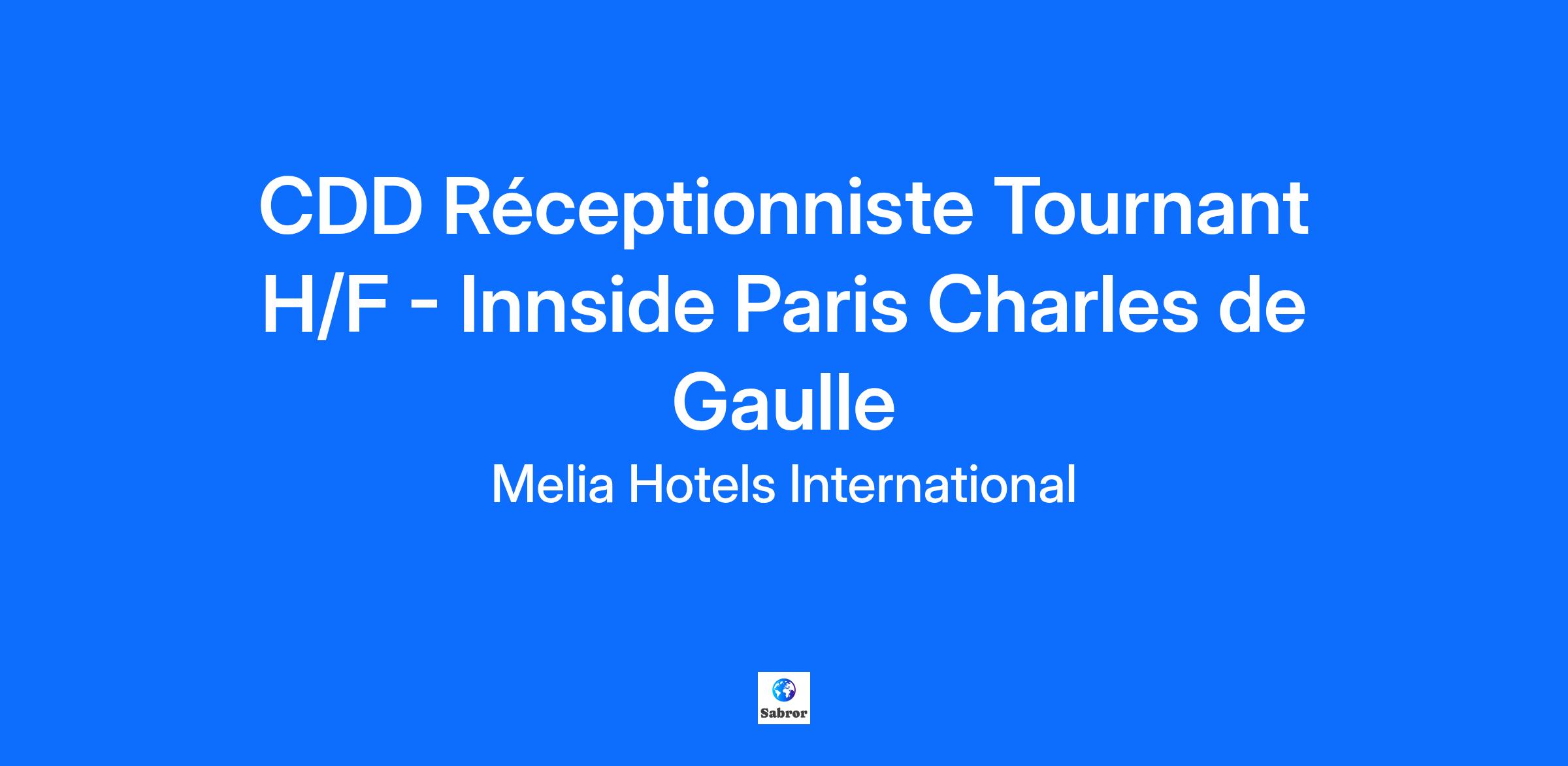 “Le monde est à vous avec Meliá” Découvrez un chemin sans limites chez Meliá, où les opportunités de croissance et de développement sont infinies. Embarquez pour un voyage qui vous mènera à travailler dans plusieurs pays et à faire partie de notre grande famille mondiale. Découvrez certains des avantages que nous offrons: My MeliáRewards: Participez à notre programme de fidélité exclusif, en profitant d'avantages uniques. My MeliáBenefits: Profitez de compensations flexibles et de réductions exclusives sur une grande variété de produits et services, en favorisant un mode de vie actif et sain. L'Innside Paris Charles de Gaulle, hôtel de 4 étoiles situé en plein cœur de l'aéroport de Paris Charles de Gaulle, est à la recherche de son futur talent en tant que Réceptionniste Tournant. Missions Principales: Assurer et veiller à la bonne prise en charge du client Écouter le client et répondre à ses attentes en étant force de proposition Optimiser les ventes de l’hôtel en termes d’occupation et de chiffre d’affaires. Dynamiser les ventes de dernière minute Assurer les ventes additionnelles (restaurant, prestations annexe : bar, mini bar). Assurer les relations d’accueil, de service et d’information auprès de la clientèle Assurer les check-in & check-out des clients individuels et groupes, des clients VIP et réguliers Assurer la facturation et l’encaissement des prestations destinées à la clientèle individuelle et à la clientèle groupe Répondre aux demandes d’informations des différents départements Effectuer les réservations lors de la fermeture du service réservation Profil recherché: Expérience similaire dans un Hôtel de même standing Maîtrise de l'anglais ou de l'espagnol Sens inné du relationnel et de la satisfaction client Connaissance en conciergerie et/ou sur l'offre gastronomique et culturelle parisienne Quels seront mes conditions d'emplois et avantages? Contrat en CDD de 4 mois Indemnités nourriture 1 RTT/mois Uniforme fourni et entretenu par l’hôtel Prime annuelle d’habillage/déshabillage Prime annuelle sur objectifs Remboursement de l’abonnement de transport à hauteur de 50% Mutuelle et prévoyance Réductions avec MyMeliaRewards dans tous les hôtels et points de ventes du groupe Melia Hotels International Chez Meliá, nous sommes tous VIP Chez Meliá Hotels International, nous nous engageons en faveur de l'égalité des chances entre les femmes et les hommes sur le lieu de travail, avec le soutien de la direction et des principes énoncés dans les politiques des ressources humaines. Nous accordons également une grande importance à la diffusion d'une culture d'entreprise axée sur l'égalité effective dans toute l'équipe et à la sensibilisation à la nécessité d'agir de manière conjointe et globale. Nous promouvons notre engagement en faveur de l'égalité et de la diversité, en évitant toute forme de discrimination, en particulier liée à des motifs de handicap, de race, de religion, de genre ou d'âge. Nous sommes convaincus que la diversité et l'inclusion parmi nos collaborateurs sont essentielles à notre succès en tant qu'entreprise mondiale. De plus, nous nous engageons pour la croissance durable de notre secteur grâce à une grande équipe humaine socialement responsable. En ce sens, notre devise est "Vers un avenir durable, à partir d'un présent responsable" Grâce à tous les collaborateurs, nous le rendons possible. Pour vous protéger et éviter les fraudes lors des processus de sélection, nous vous invitons à consulter nos recommandations sur la page "Protege ta candidature". Si vous souhaitez devenir “Very Inspiring People“, suivez - nous sur: INSTAGRAM – TIKTOK – LINKEDIN – INDEED – GLASSDOOR