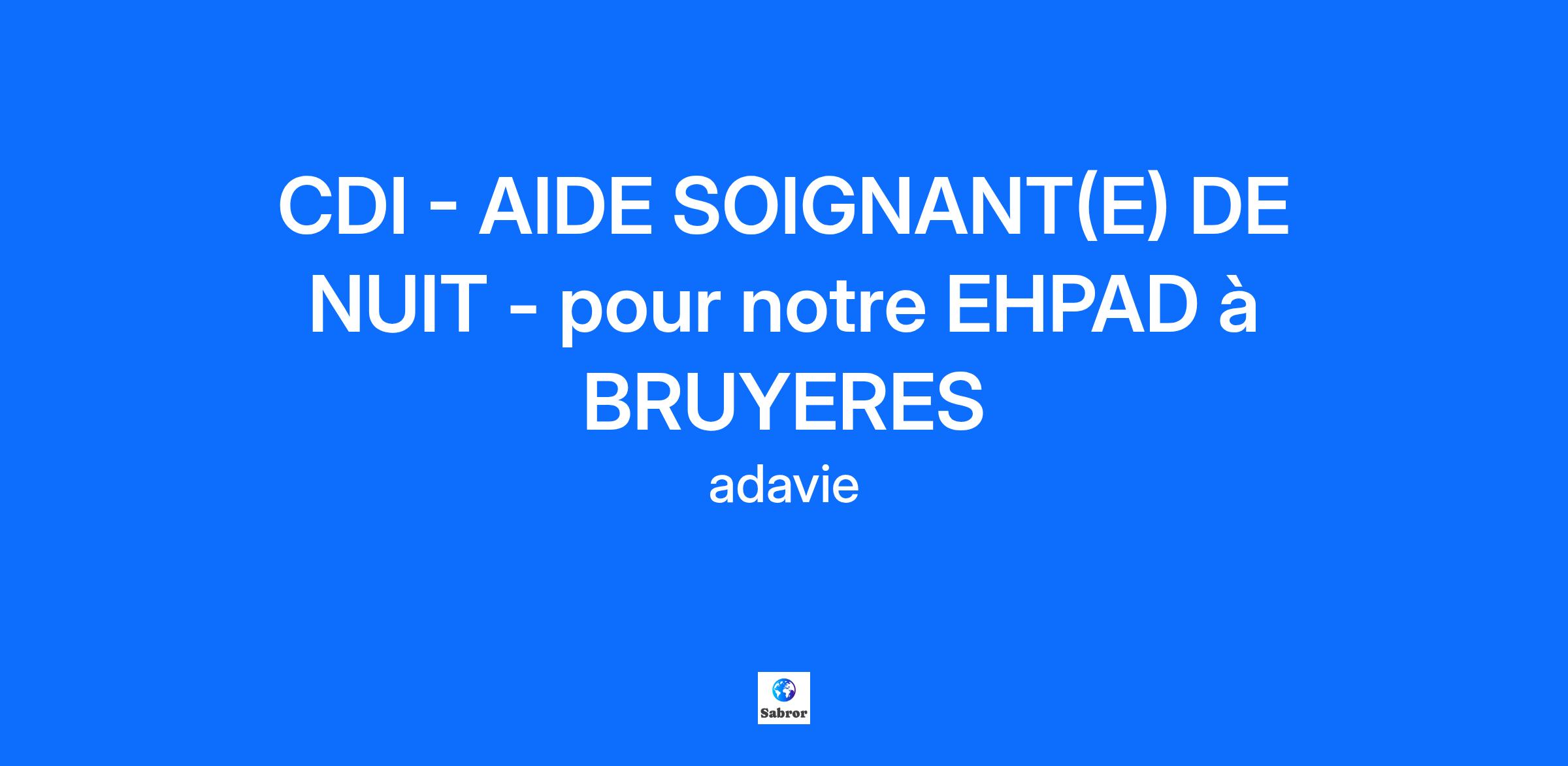 CDI - AIDE SOIGNANT(E) DE NUIT - pour notre EHPAD à BRUYERES