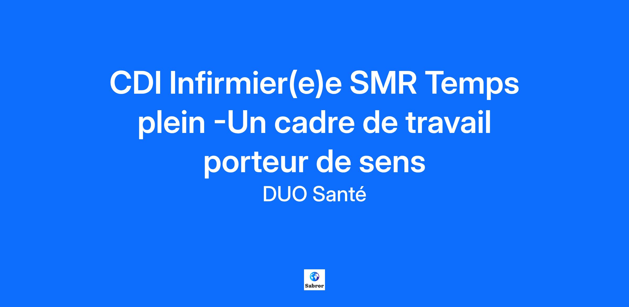 Infirmier(ère) en Service SMR – CDI Temps Plein Poste à pourvoir dès que possible L’établissement Travaillez dans un établissement privé à but non lucratif, offrant une prise en charge complète des patients : soins médicaux, rééducation et accompagnement des personnes âgées. Vous évoluerez dans un cadre humain et dynamique, au sein d’une équipe pluridisciplinaire bienveillante, et participerez à un projet où le bien-être des patients et la qualité des soins sont au cœur de nos missions. Pourquoi nous rejoindre ? Services variés : médecine gériatrique, SMR, hôpital de jour, consultations externes ; Équipe pluridisciplinaire bienveillante et cadre de travail humain et dynamique ; Participez à un projet centré sur le bien-être des patients et la qualité des soins. Vos missions Rejoignez notre équipe et accompagnez les patients nécessitant des soins prolongés et une rééducation spécialisée. Missions principales : Administrer traitements et soins techniques : perfusions, injections, pansements, suivi des dispositifs médicaux ; Surveiller l’état clinique et prévenir les complications ; Collaborer avec l’équipe pluridisciplinaire pour la rééducation et le suivi global des patients ; Soutenir les patients dans leur quotidien et créer un lien de confiance durable. Pourquoi choisir DUO Santé ? DUO Santé, partenaire de l’établissement, vous accompagne avant votre prise de poste et dès les premières semaines de votre démarrage, avec un suivi personnalisé pour faciliter votre intégration. Avant même votre entretien avec la cadre, vous connaissez toutes les conditions de travail, le salaire et les horaires : il ne vous reste plus qu’à valider votre adéquation avec l’équipe lors de l’entretien. Profil recherché Rigoureux(se), à l’écoute et doté(e) d’un esprit d’équipe ; Diplôme d’État d’Infirmier(ère) requis, expérience en SMR ou en soins prolongés appréciée. Conditions et avantages CDI – Temps plein (horaires 7 h – jour/nuit – week-end ) Reprise d’ancienneté selon la convention applicable Rémunération selon la convention collective + primes éventuelles Mutuelle, CSE, avantages sociaux