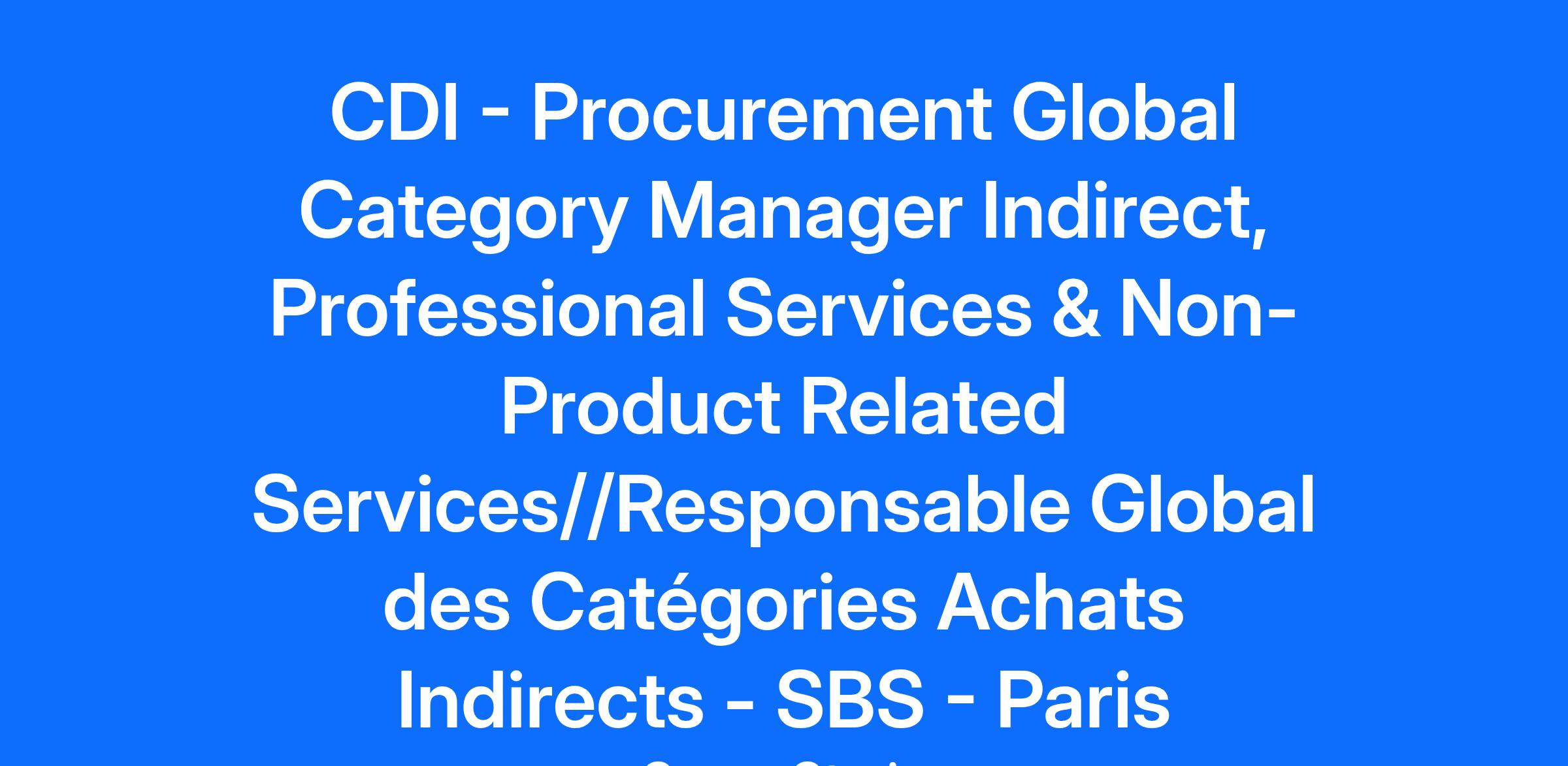 CDI - Procurement Global Category Manager Indirect, Professional Services & Non-Product Related Services//Responsable Global des Catégories Achats Indirects - SBS - Paris