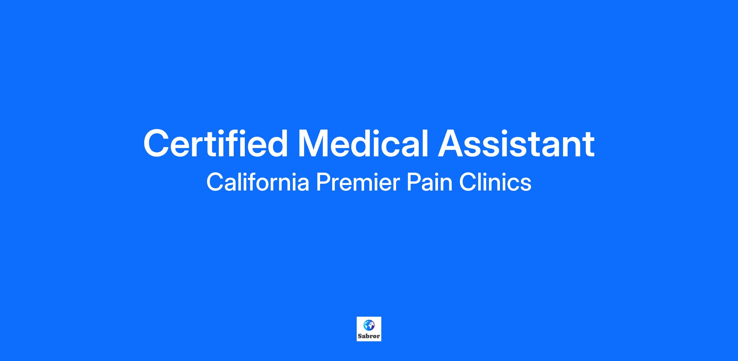 California Premier Pain Clinics is looking for a part-time or full-time Medical Assistant to join our medical office.