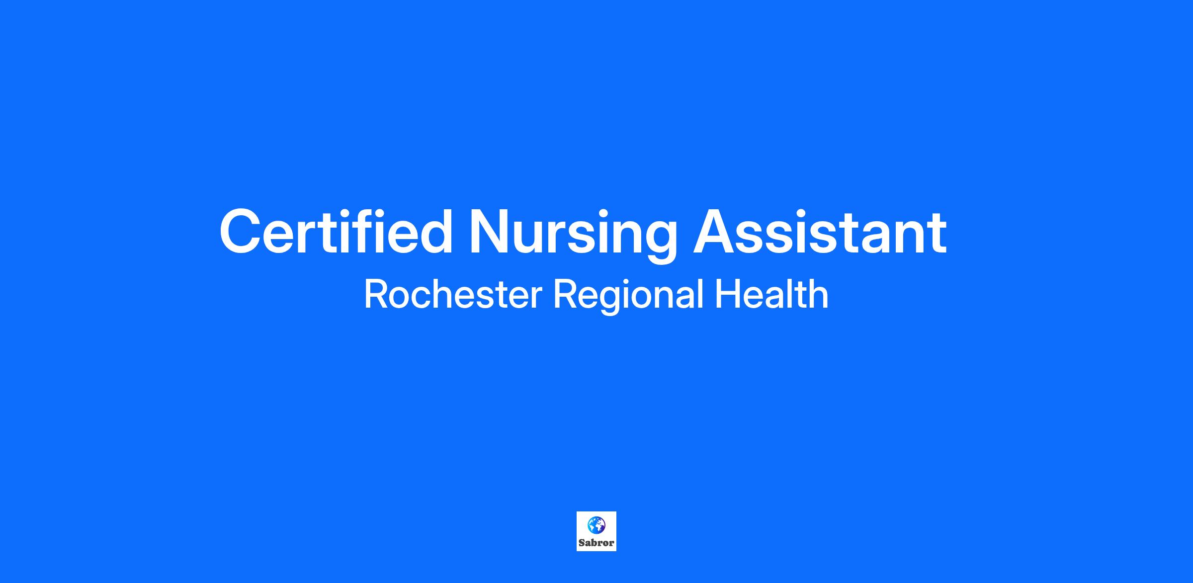 Job Title: Certified Nursing Assistant Department: LTC Location: Clifton Springs Nursing Home Hours Per Week: per diem Schedule: per diem SUMMARY: As a Certified Nursing Assistant, you will provide high quality, individualized patient care in collaboration with the nursing team. Your ability to take initiative while always assisting and maintaining patient care will be critical in the success of the entire team. RESPONSIBILITIES: Patient Care & Service - Provide and/or assist the resident in activities necessary as per individualized care planning; transport to and from activities as needed; provide leisure activities as needed; perform evaluation and reporting; provide resident and family with emotional support Safety - Assist in maintaining a clean and safe resident environment Communication & Documentation - Support families, direct them to appropriate professional staff; respond to resident requests in a timely manner; receive/give reports to team members/team leader REQUIRED QUALIFICATIONS: Currently certified in New York State as a Certified Nursing Assistant. PREFERRED QUALIFICATIONS: High School Diploma or equivalent preferred. Strong customer service and communication skills preferred. EDUCATION: LICENSES / CERTIFICATIONS: CNA - Certified Nursing Assistant - New York State Education Department (NYSED)New York State Education Department (NYSED) PHYSICAL REQUIREMENTS: M - Medium Work - Exerting 20 to 50 pounds of force occasionally, and/or 10 to 25 pounds of force frequently, and/or greater than negligible up to 10 pounds of force constantly to move objects; Requires frequent walking, standing or squatting. For disease specific care programs refer to the program specific requirements of the department for further specifications on experience and educational expectations, including continuing education requirements. Any physical requirements reported by a prospective employee and/or employee’s physician or delegate will be considered for accommodations. PAY RANGE: $21.12 - $21.12 CITY: Clifton Springs POSTAL CODE: 14432 The listed base pay range is a good faith representation of current potential base pay for a successful full time applicant. It may be modified in the future and eligible for additional pay components. Pay is determined by factors including experience, relevant qualifications, specialty, internal equity, location, and contracts. Rochester Regional Health is an Equal Opportunity Employer. All qualified applicants will receive consideration for employment without regard to race, color, creed, religion, sex (including pregnancy, childbirth, and related medical conditions), sexual orientation, gender identity or expression, national origin, age, disability, predisposing genetic characteristics, marital or familial status, military or veteran status, citizenship or immigration status, or any other characteristic protected by federal, state, or local law. Rochester Regional Health is an integrated health services organization serving the people of Western New York, the Finger Lakes, St. Lawrence County, and beyond. The system includes nine hospitals; primary and specialty practices, rehabilitation centers, ambulatory campuses and immediate care facilities; innovative senior services, facilities and independent housing; a wide range of behavioral health services; and Rochester Regional Health Laboratories and ACM Global Laboratories, a global leader in patient and clinical trials. It’s vision is to lead the evolution of healthcare to enable every member of the communities it serves to enjoy a better, healthier life.