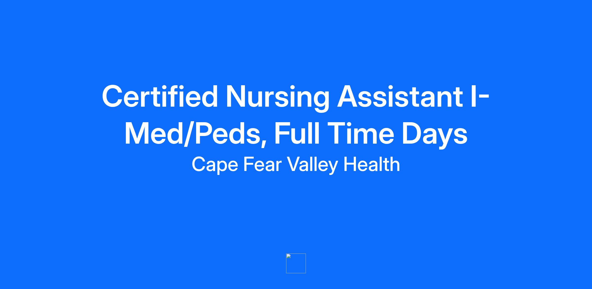 $7,500 Sign-On Bonus! Facility Betsy Johnson Hospital Location Dunn, North Carolina Department 2nd Floor Med/Peds Job Family Nursing Support Work Shift Days (United States of America) Summary Performs basic patient care. Observes and reports abnormal occurrences or changes in patient condition. Cleans, stocks and maintains supplies for the patient unit. Knowledge, Skills, and Abilities Major Job Functions The following is a summary of the major essential functions of this job. The incumbent may perform other duties, both major and minor, that are not mentioned below. In addition, specific functions may change from time to time: Assists in the admission of patients to the unit to include orientation to the unit, hospital routine and patient care equipment Responds to needs of patients with direct assistance when able or by reporting patient needs to the appropriate person Assists with implementation of nursing plan of care by carrying out delegated patient care tasks Assists in maintaining patient safety to include the proper use of equipment and supplies Access to medication/supply room to retrieve patient care items for patient care use Maintains a well-stocked, clean patient environment Actively participates in cost containment and assists in accurate charging for patient services Participates in educational and Performance Improvement activities Maintains (if needed) 4 of NAII skills per unit competency Performs waived testing per unit competency Actively demonstrates responsibility concerning customer satisfaction, patient throughput and hospital functional capacity through compliance with the Hospital Innovation Project (HIP) Other duties as assigned Minimum Qualifications The following qualifications, or equivalents, are the minimum requirements necessary to perform the essential functions of this job: Education and Formal Training: High school graduate or equivalent required Nursing Assistant certification required Current registration with North Carolina Division of Facility Services Work Experience: None Knowledge, Skills, and Abilities Required: Excellent guest relations skills Verbal and written skills required Ability to read English Ability to accept supervision from a multidisciplinary team Flexible in approach to work tasks and schedules Able to grasp new skills and techniques Has basic knowledge of age-specific considerations for patients served Has basic computer skills Physical Requirements: Ability to work variable shifts Ability to turn and lift patients Much standing, walking, bending and lifting Possess visual and auditory acuity for observing patients Position involves exposure to blood and body secretions and may involve skin, eye, mucous membrane, or parenteral contact with blood or other potentially infectious material Required Licenses and Certifications BLS - American Heart Association, CNA - NC Nursing Assistant Registry Cape Fear Valley Health System is an Equal Opportunity Employer M/F/Disability/Veteran/Sexual Orientation/Gender Identity For exceptional healthcare come to Cape Fear Valley Health where caring employees are committed to integrity, patient-centeredness and excellence throughout the entire healthcare process. At Cape Fear Valley Health, our goal is to improve the quality of every life we touch. Our diverse team of doctors, nurses and staff work together to create a better experience for every patient, every time. Cape Fear Valley is a 950-bed, 8-hospital regional health system, the 8th largest in North Carolina, with more than 1 million inpatient and outpatients annually. A private not-for-profit organization with over 7,000 employees and 850 physicians. Our employees and physicians proudly serve a seven-county region of southeastern North Carolina, including Fayetteville, Fort Bragg, Hope Mills, Raeford, Lumberton, Elizabethtown, Clinton, Lillington, Dunn and beyond. Our medical facilities include Cape Fear Valley Medical Center, Highsmith-Rainey Specialty Hospital, Cape Fear Valley Rehabilitation Center, Behavioral Health Care, Bladen County Hospital, Hoke Hospital, Central Harnett Hospital, Betsy Johnson Hospital, as well as more than 60 medical offices and specialty care clinics spread throughout the Cape Fear region.