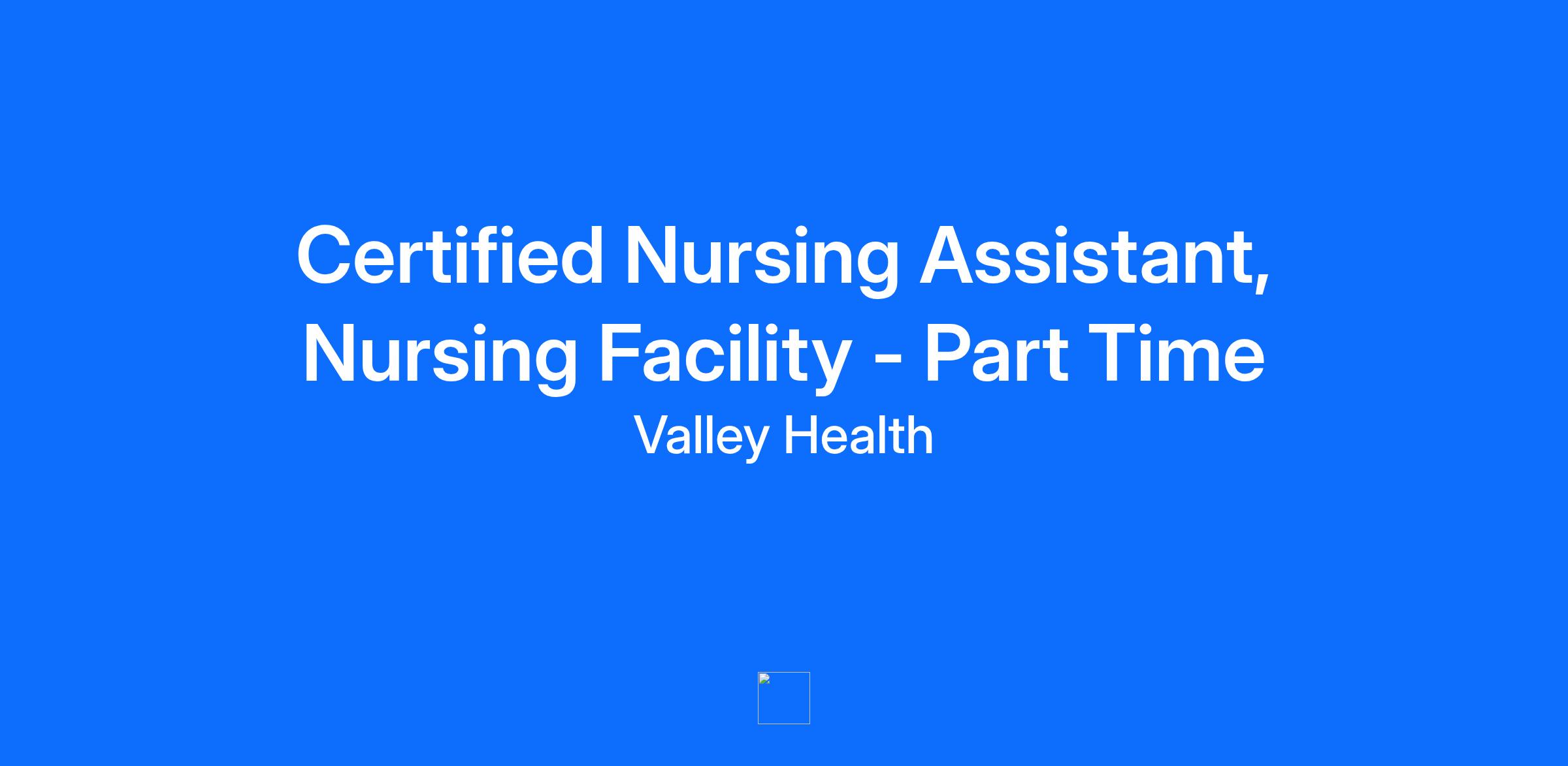 Department NURSING FACILITY - 806150 Worker Sub Type Regular Work Shift Pay Grade Job Description Under the direction of an RN/LPN, provides care and treatment appropriate to the age of patients/residents served as defined and determined through the unit specific Scope of Care, Competency/Skills Checklists, Equipment Skills Matrix, Policies and Procedures and Inservice Training. Maintains safe environment and reports any problems. Supports the Valley Health System (VHS) mission statement. Supports new policies and procedures. Assists when requested in quality review studies. Acts as a preceptor in the orientation of new CNAs. Duties may include, but are not limited to: Performs routine basic patient care under the supervision of a registered nurse. Receives report and/or makes rounds on each assigned patient/resident with the registered nurse/licensed personnel. Performs and completes assigned tasks accurately. Assists licensed personnel in the delivery of patient/resident care. Obtains and records patient’s vital signs and reports to the Nurse. Recognizes variations in patient/resident condition from what is normally found. Reports observations to the team leaders, i.e., patient complaints, patient behavior or appearance, family complaints. Assists patient/resident with ADL’s, ambulation, transfers, functional/bed mobility, exercises, application and/or use of equipment or orthotics (for example: prosthesis, AFO, ambulation devices, etc.) according to the established protocols and/or patient/resident plan of care. Demonstrates understanding of pressure ulcer staging (Stages: I, II, III, IV). Follows skin care/wound protocol (for example: sterile technique, Stage II dressing changes, pressure relief devices/techniques). Demonstrates understanding of adequate nutrition and hydration for populations served. Follows continence management protocol (for example: bladder scans, timed voids, Foley management). Demonstrates the ability to manage the cognitively impaired and/or dementia patients/residents (for example: TBI, dementia, strokes/MI). Utilizes cognitive/communication adaptive techniques (for example: validation therapy, use of compensatory attention/memory strategies, cueing for safety, etc.) for patients/residents with cognitive impairment according to protocols and patients/residents plan of care. Demonstrates the ability to manage agitated patients/residents (for example: TBI, panic disorder, anxiety, dementia, paranoia, psychiatric history) by working 1:1 with the patient/resident using de-escalation techniques as designated in unit protocols or the patient/resident plan of care. Maintains accurate, timely and objective documentation (for example: vital signs, ADL’s, weight, intake, output, food intake, restorative, activity) each shift. Adheres to Infection Control policies at all times. Maintains a safe, clean environment on the nursing unit. Reports unsafe and/or broken equipment or practices immediately to appropriate personnel. Provides input and supports individual care plan goals for patients/residents. Manages fluctuations in patient/resident load and demonstrates flexibility of work assignments. Reports completeness of assigned tasks to the nurse at end of shift and, as necessary, otherwise. Serves as a preceptor to new CNAs on the unit (for example, serves as advisor and coach, shares job duties, offers support, encourages peak performance, role model, assists with care plan implementation and documentation, utilizes organizational roles and responsibilities). Assists with orientation of new staff (for example: use of adaptive equipment, transfer protocols, continence management, wound care protocols and eating skills) as assigned. Displays initiative and maintains proficiency in patient care procedures. Performs task appropriate for the skill level and educational preparation. Assists other unit members without being asked when own work is complete. Follows documented policy and procedure in the delivery of patient care. Participates in patient/resident care conferences, staff meetings and in services (minimum of 10 per year) and nursing committees. Completes all mandatory certifications and competencies. Education High School Diploma or equivalent is preferred. Certification & Licensure Registry of the Board of Nursing as a Certified Nurse Aide required. Must be listed on the relevant Registry of the Board of Nursing as a Certified Nurse Aide in Virginia and/or West Virginia based on work location(s) within Valley Health. BLS Certification (Basic Life Support) - American Heart ‘Healthcare Provider’ (HCP) - AHA approved required. New hires must have American Heart Association (AHA) appropriate certification prior to completion of orientation. Qualifications Must understand basic principles of human growth and development. Must be competent to successfully interact with patients according to their special needs which may apply based on the age of the patient served. Must have a reliable means of phone communication with hospital. Benefits At Valley Health, we believe everyone is a caregiver, and our goal is to create an environment where our caregivers thrive physically, financially, and emotionally. In addition to a competitive salary, our most popular benefits for full-time employees include: A Zero-Deductible Health Plan Dental and vision insurance Generous Paid Time Off Tuition Assistance Retirement Savings Match A Robust Employee Assistance Program to help with many aspects of emotional wellbeing Membership to Healthy U: An Incentive-Based Wellness Program Valley Health also offers a health savings account & flexible spending account for childcare, life insurance, short-term and long-term disability, and professional development. In addition, several perks come with working for the largest employer in the region, such as discounts to on-campus dining, and more. To see the full scale of what we offer, visit valleyhealthbenefits.com. Our Growth is Creating G