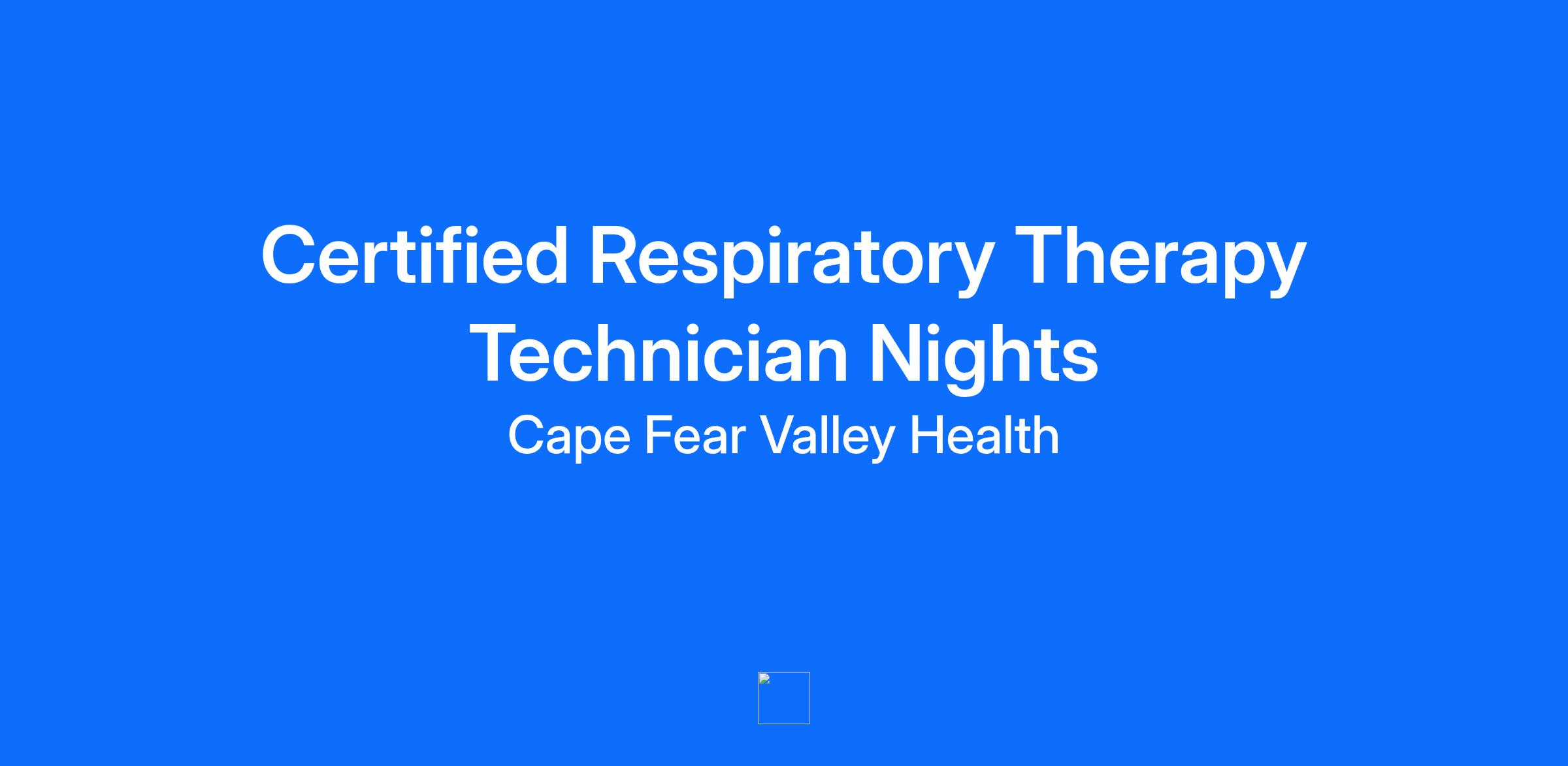 Facility Cape Fear Valley Medical Center Location Fayetteville, North Carolina Department Respiratory Care Services Job Family Allied Health Work Shift Nights (United States of America) Summary Performs all aspects and modalities of Respiratory Care to Health System patients per department guidelines. Responds to resuscitation situations and other respiratory emergencies when needed. Maintains and completes appropriate documentation in patients’ charts and departmental records. Performs as charge therapist when necessary. Major Job Functions The following is a summary of the major essential functions of this job. The incumbent may perform other duties, both major and minor, that are not mentioned below. In addition, specific functions may change from time to time: Administer continuous oxygen and continuous bland aerosol therapy per department guidelines Performs intermittent therapy and diagnostic procedures per department guidelines Access patient medication from the Medication Security Area to implement respiratory care per hospital and departmental policies and procedures Initiate and maintain mechanical ventilation and completes appropriate documentation Provide airway management, ventilation, and closed chest compression as necessary during emergency resuscitation. Perform intubation after receiving approval. Initiate and maintain monitoring equipment Perform as charge therapists in the absence of a supervisor Knowledgeable in the use of equipment and treatment modalities for patients of all ages Charge all services provided inclusive of use of BCX system Other duties as assigned Minimum Qualifications The following qualifications, or equivalents, are the minimum requirements necessary to perform the essential functions of this job: Education and Formal Training: CRT credentials or Provisional License required Graduate of a COARC approved Respiratory Care Program Certified by the National Board for Respiratory Care (CRT) Licensed by the NCRCB BCLS certified by the American Heart Association Must obtain RRT credentials within 36 months of hire date to maintain employment Work Experience: None Knowledge, Skills, and Abilities Required: Must have an understanding of medical terminology and current respiratory care modalities Must have the ability to react calmly and maintain composure in stressful situations and when dealing with co-workers, patients, and hospital guests Knowledgeable of the psychosocial and physiological development and spiritual needs of infants, children, adolescents, and all adult age groups (per Erickson’s Model) in order to provide appropriate care and intervention, either personally or though staff Physical Requirements: Speech and auditory acuity for communication of patient needs Visual acuity for observation of patients Long periods of standing, walking, bending, and lifting Manual dexterity to operate and assemble equipment Ability to position and move patients Ability to push heavy equipment to patients’ bedsides May involve skin, eye, mucous membrane, or parenteral contact with blood or other potentially infectious material Required Licenses and Certifications CRT - NC Respiratory Care Board Cape Fear Valley Health System is an Equal Opportunity Employer M/F/Disability/Veteran/Sexual Orientation/Gender Identity For exceptional healthcare come to Cape Fear Valley Health where caring employees are committed to integrity, patient-centeredness and excellence throughout the entire healthcare process. At Cape Fear Valley Health, our goal is to improve the quality of every life we touch. Our diverse team of doctors, nurses and staff work together to create a better experience for every patient, every time. Cape Fear Valley is a 950-bed, 8-hospital regional health system, the 8th largest in North Carolina, with more than 1 million inpatient and outpatients annually. A private not-for-profit organization with over 7,000 employees and 850 physicians. Our employees and physicians proudly serve a seven-county region of southeastern North Carolina, including Fayetteville, Fort Bragg, Hope Mills, Raeford, Lumberton, Elizabethtown, Clinton, Lillington, Dunn and beyond. Our medical facilities include Cape Fear Valley Medical Center, Highsmith-Rainey Specialty Hospital, Cape Fear Valley Rehabilitation Center, Behavioral Health Care, Bladen County Hospital, Hoke Hospital, Central Harnett Hospital, Betsy Johnson Hospital, as well as more than 60 medical offices and specialty care clinics spread throughout the Cape Fear region.