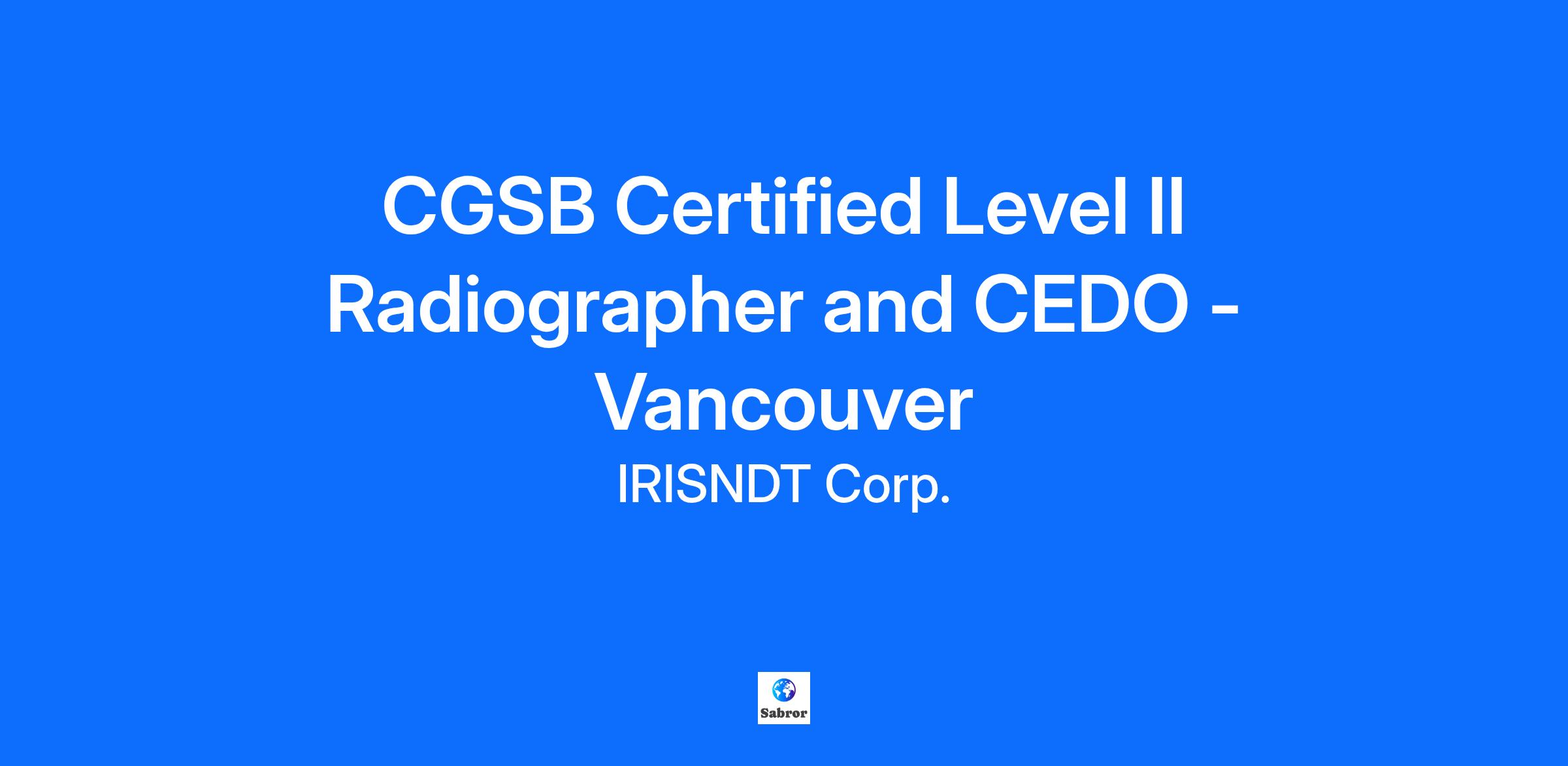 CGSB Certified Level II Radiographer and CEDO - Vancouver