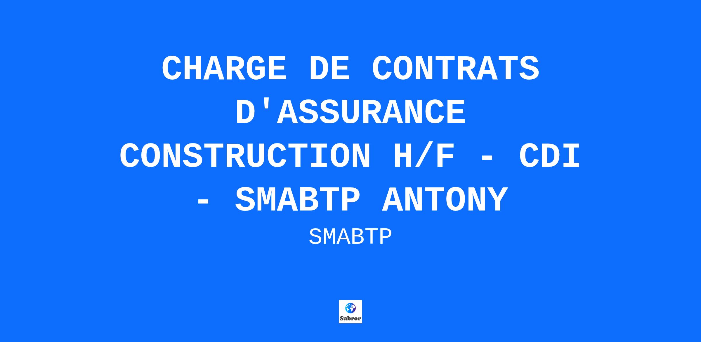 CHARGE DE CONTRATS D'ASSURANCE CONSTRUCTION H/F - CDI - SMABTP ANTONY