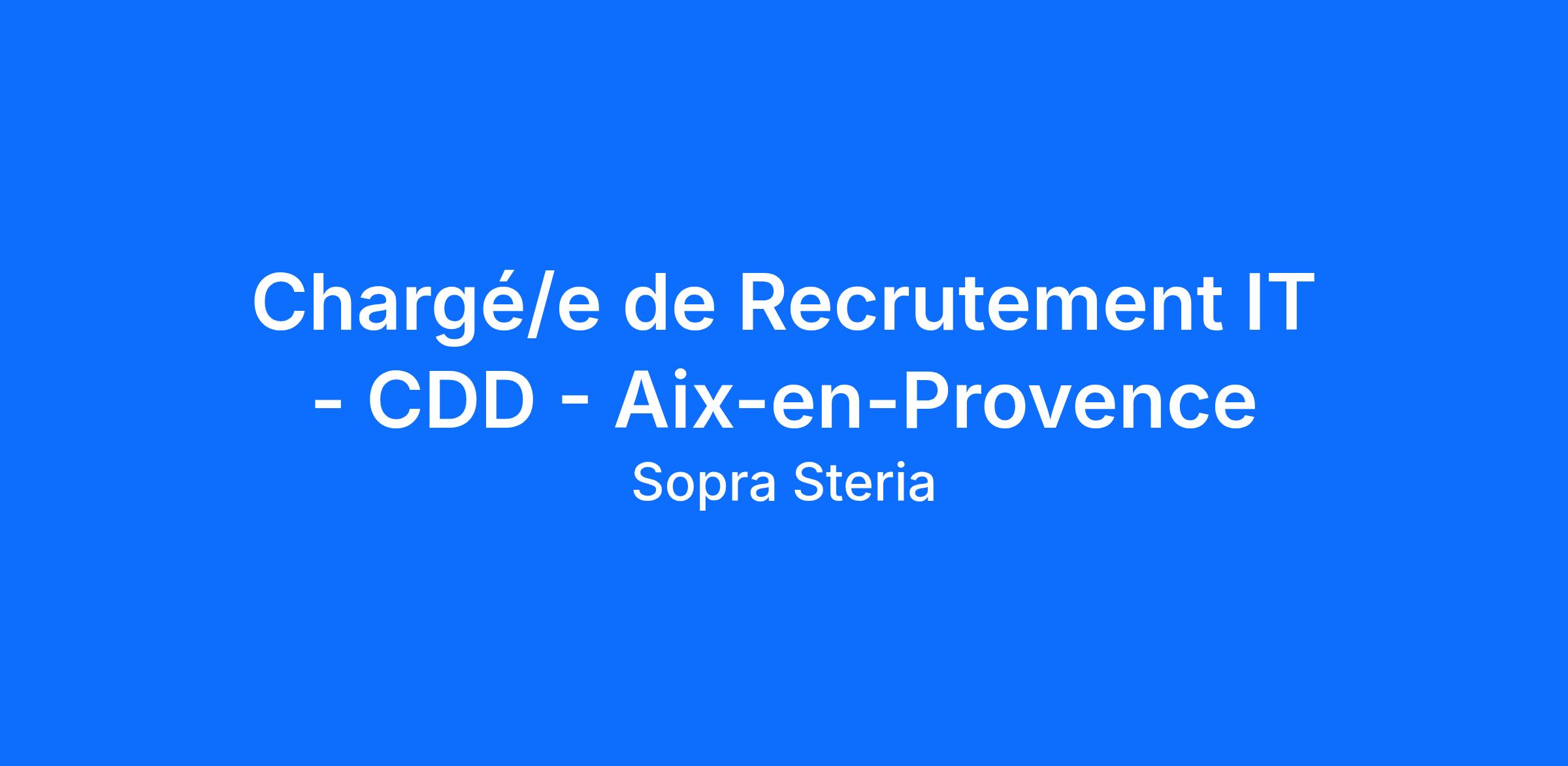 Sous la responsabilité de Cyril, notre Responsable Recrutement Région, vous intégrez l'équipe recrutement des Bassins AuRA & Sud-Est, composée de 8 recruteurs. CDD (du 02.03.26 au 04.09.26), basé en présentiel à Aix-en-Provence.