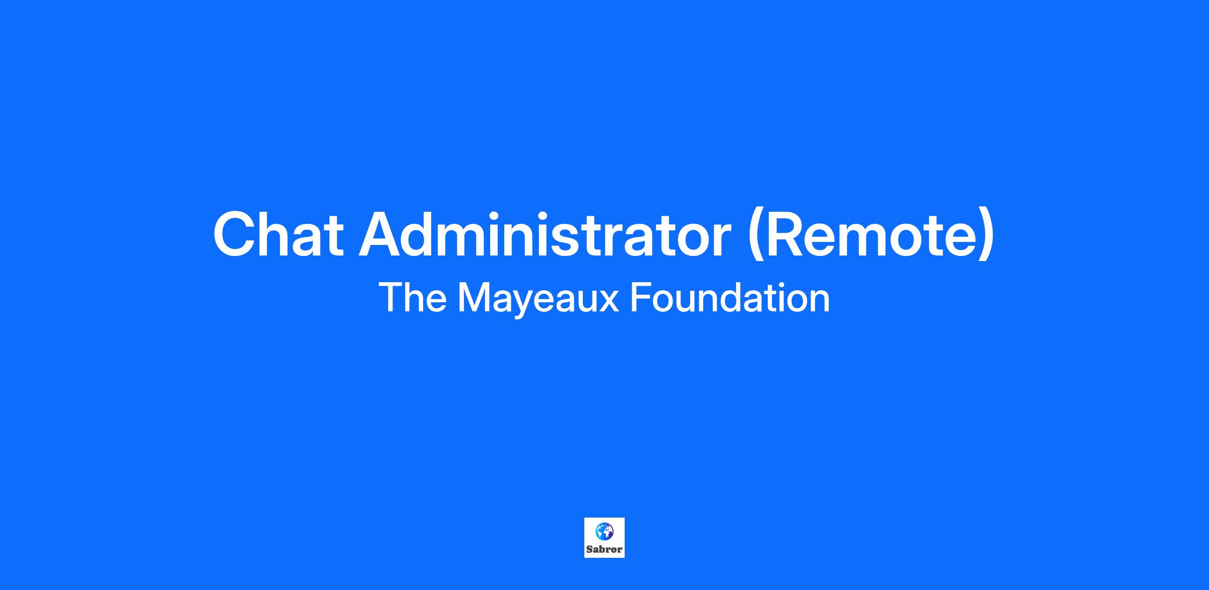 - The "Chat Administrator" position is a part-time, remote, and flexible position that entails moderating the chat of the official Discord of The Mayeaux Foundation. This can include but is not limited to: 1) Deleting messages made by users that violate the rules of the Discord server. 2) Banning users that have multiple and repeat violations of the rules of the Discord server. 3) Muting users that have violated the rules of the Discord server. 4) Investigating reports made by users about violations of the rules of the Discord server. 5) Managing the Chat Moderators. 6) Managing the Discord server when higher levels of management are not present.