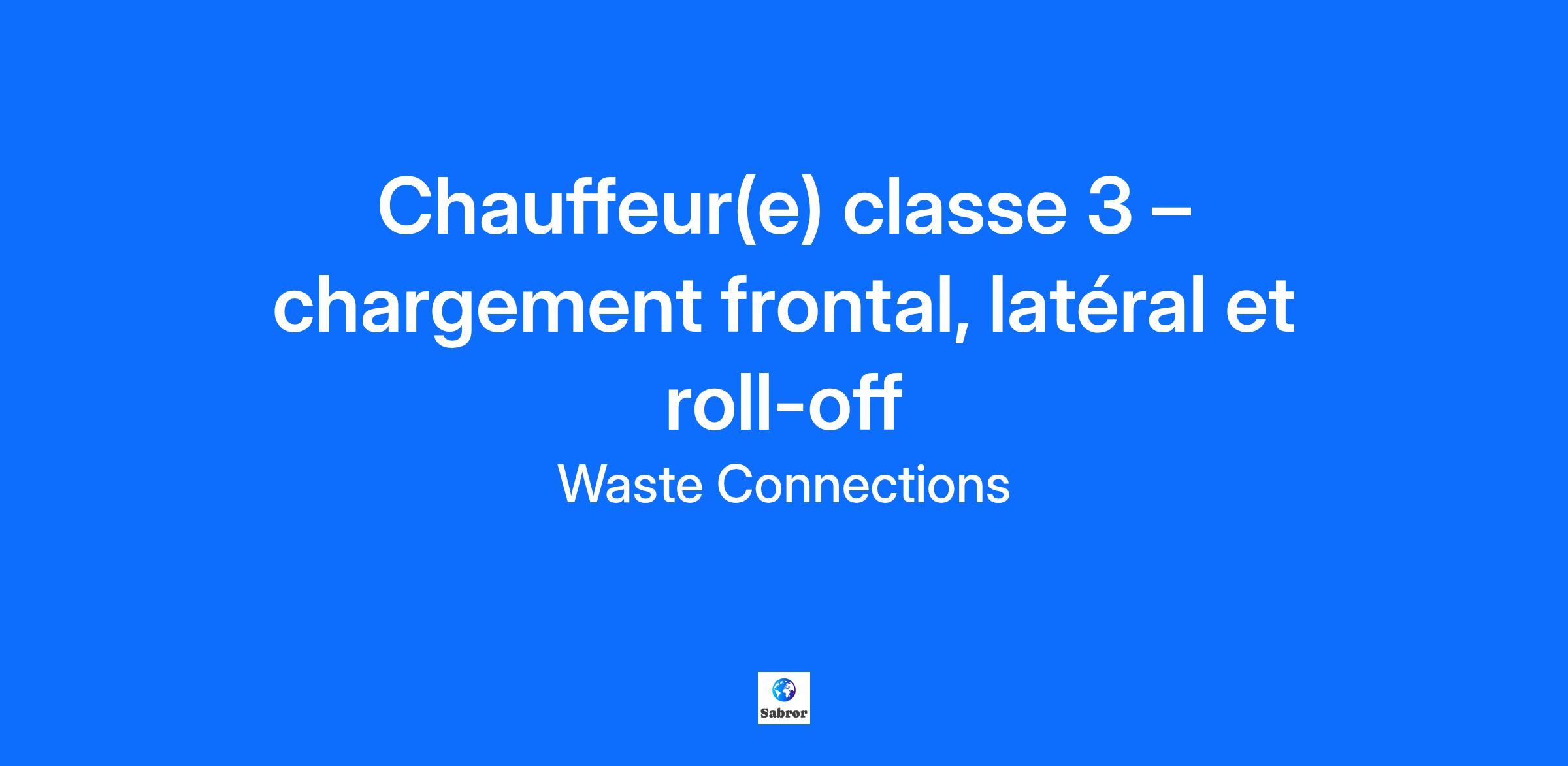 Titre du poste: Chauffeur(e) classe 3 – chargement frontal, latéral et roll-off