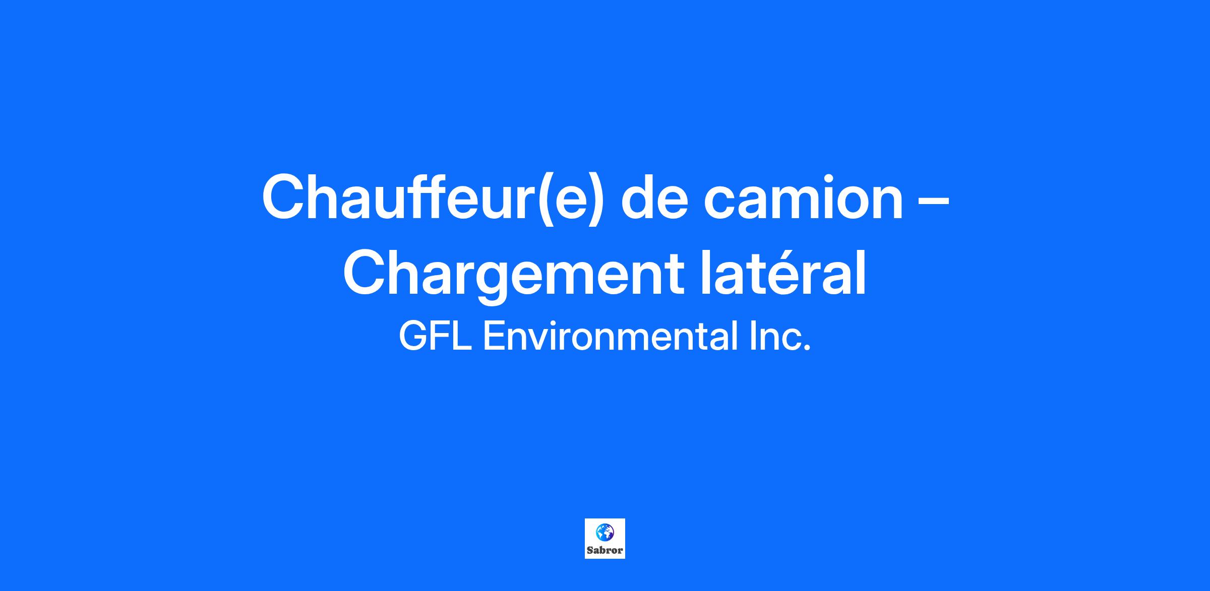 Poste : Chauffeur(e) de camion – Chargement latéral Lieu de travail : 1086 rue Industrielle,Mont-Joli Poste permanent Bienvenue chez Matrec, une division de GFL! Nous sommes une entreprise dynamique, axée sur la croissance et la sécurité. GFL assure la collecte et le traitement des déchets, du recyclage ainsi que des matières organiques. Nous couvrons l’Amérique du Nord avec plus de 20 000 employés. Nous recherchons des chauffeurs (es) de camions classe 3 ayant de l’expérience dans la conduite de camion à chargement arrière ou latéral pour se joindre à notre équipe de Mont-Joli. Rôles et responsabilités : · Conduire camion de type de camions à chargement latéral. · Effectuer la collecte de bacs roulants · Maintenir une communication constante avec les répartiteurs. · Maintenir une relation professionnelle avec la clientèle sur les lieux de collecte. · Remplir des rapports journaliers, des feuilles de route et des bons de travail. · Vérifier et identifier les types de déchets que vous transportez : Déchets, Recyclage, Matériaux sec… · Transmettre au superviseur toute anomalie dans l’application de la demande de service; · Effectuer l’inspection et la ronde de sécurité du véhicule avant départ; · Toutes autres tâches connexes. Ce que nous offrons : · Horaire variable du lundi au vendredi · Être disponible pour du temps supplémentaires; · Être disponibles les fins de semaines et les jours fériés; Qualifications et exigences : · Permis de conduire classe 3 mention FM valide; · Expérience en conduite de véhicule à chargement latéral un atout. · Bon dossier de conduite; · Excellente dextérité manuelle et aimer la machinerie; · Débrouillardise, autonomie et service à la clientèle requis. We thank you for your interest. Only those selected for an interview will be contacted. GFL is committed to equal opportunity for all, without regard to race, religion, color, national origin, citizenship, sex, sexual orientation, gender identity, age, veteran status, disability, genetic information, or any other protected characteristic. If you are interested in applying for employment and need special assistance or an accommodation to apply for a posted position, please contact myworkdayrecruitment@gflenv.com Current GFL Employees If you are an existing GFL employee and would like to search and apply to current job openings, please visit the internal GFL Jobs Hub. At the heart of GFL lies our greatest asset—our people. So, we're glad you landed here! We believe in great careers, making a positive impact on the environment and supporting our people with their life ambitions. We aspire to create the right jobs in a way that brings you along with us. At GFL, growth isn’t just for our business—it’s for our people. Because we see the potential in all our employees to do whatever it is they set their mind to, and we’re proud to support them in that journey. We consider our employees’ personal goals, helping them create the career, and life, that they desire—whether it’s advancing in their job, learning new skills, forming lasting relationships, or mentoring others, while having time to pursue other life ambitions. With safety and sustainability at the core of what we do, we all come together to form “Team Green”—united by our shared purpose to provide environmental solutions that enable our customers and the communities we serve to be Green For Life. We’re proud to say that working for GFL is more than a job. It’s an opportunity to make a difference and grow tremendously along the way. Regardless of the work we’re doing today, we’ve got our sights set on the big picture—not just tomorrow, but for life. GFL empowers those looking for growth in their career and lives, whether that's on our Field Operations teams or Professional Services teams. Field Operations – Our Field positions offer candidates across North America the potential for limitless growth and skill expansion as the front line of our organization, making them central to our company's vision of creating cleaner and more sustainable communities. Professional Services – Our Corporate positions located in key North American offices grow candidates to form strong client relations, manage key programs and accounts, and ensure our Field teams are operating at maximum efficiency.