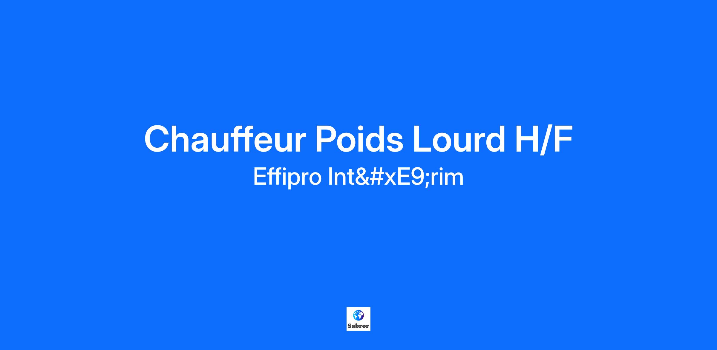 EFFIPRO intérim, Agence d'emploi recrute un Chauffeur Poids Lourd H/F sur Lyon (69)