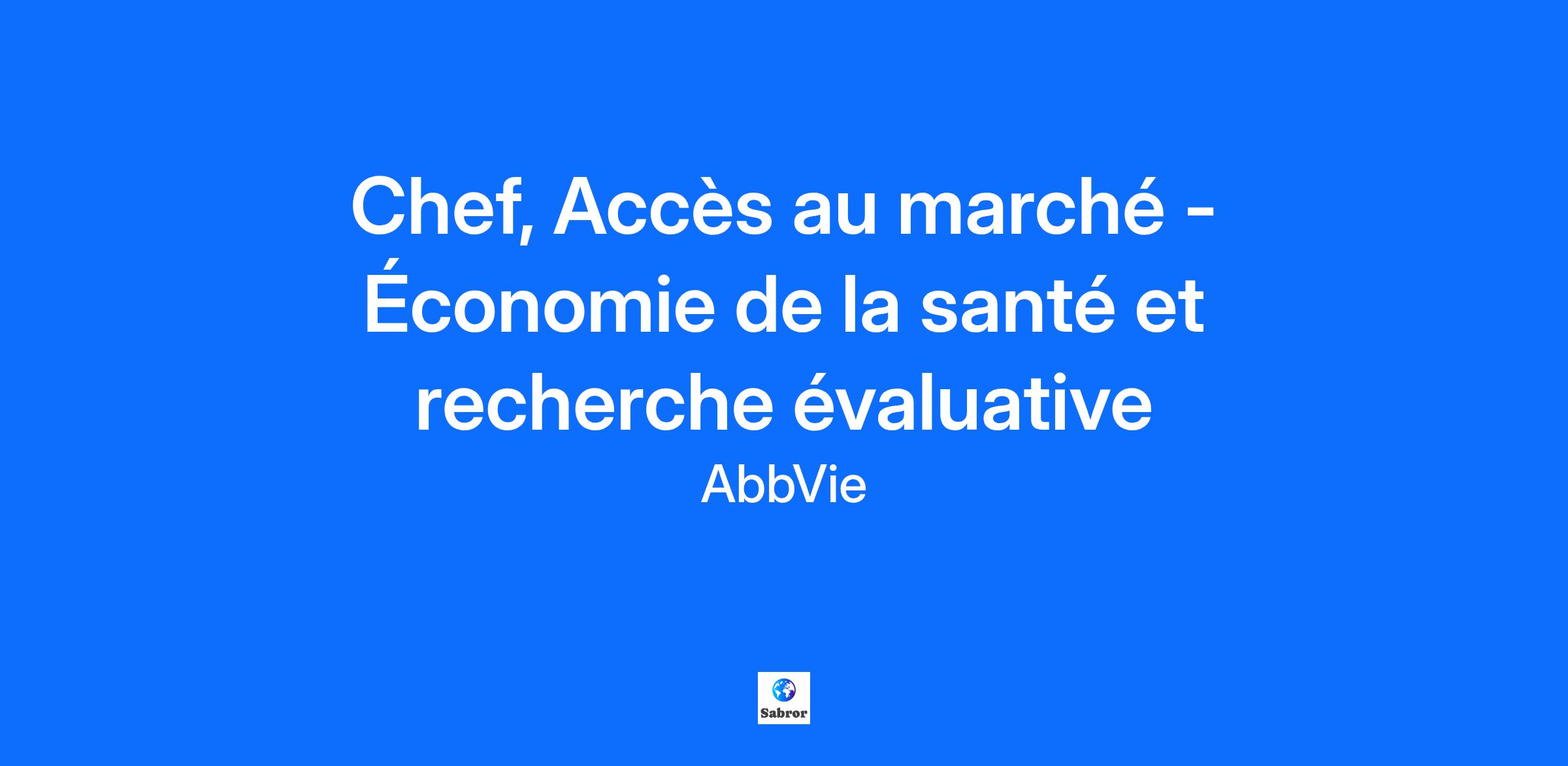 Le Chef, Accès au marché - Économie de la santé et recherche évaluative est chargé de développer et d'exécuter des plans stratégiques pour sécuriser, maintenir et optimiser le remboursement des produits AbbVie auprès des payeurs publics et privés.