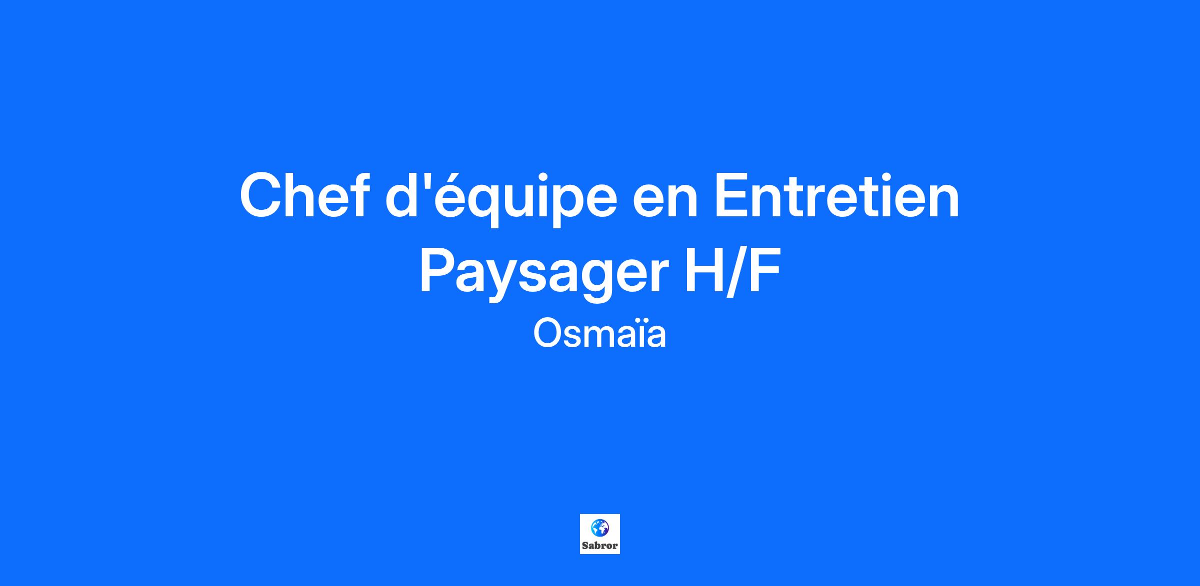 Osmaïa se positionne comme un des acteurs principaux dans le domaine de l'aménagement paysager en France. Avec plus de 40 implantations réparties dans l’hexagone et en Suisse, il s'appuie sur une vingtaine de marques locales bien établies. L'approche du groupe repose sur le renforcement des marques régionales, solidement enracinées dans leurs territoires respectifs et partageant des valeurs communes telles que l’inventivité, l’agilité, la bienveillance et la rigueur. Notre philosophie : Guidés par la nature, nous nous engageons chaque jour préserver la biodiversité et remettre l’expérience de la nature au cœur de notre quotidien pour le bien-être de tous.Chez Osmaia, nous sommes convaincus que chaque talent a sa place. Qu’il soit associé à un handicap visible ou invisible, nous proposons un accompagnement sur mesure pour construire un avenir professionnel épanouissant. Chez Osmaia, nous sommes convaincus que chaque talent a sa place. Qu’il soit associé à un handicap visible ou invisible, nous proposons un accompagnement sur mesure pour construire un avenir professionnel épanouissant. Pinson Paysage vient de célébrer ses 130 ans, et est spécialisée dans la création et l’entretien d’espaces paysagers. Nous sommes en recherche continue de nouveaux profils afin d’accompagner notre croissance. Vous souhaitez mieux nous connaître ? : https://pinson-paysage.com/ https://www.osmaia-group.com/ Afin d’accompagner notre évolution, nous sommes aujourd’hui à la recherche pour notre entité PINSON PAYSAGE île de France de plusieurs Chefs d’équipe en Entretien H/F. Directement rattaché(e) au Chef de chantier, vos missions seront les suivantes : Encadrer et manager une équipe d’un ou plusieurs ouvriers paysagistes : Répartir les tâches et donner les consignes, transmettre votre expérience et vos connaissances techniques, • Manager les équipes de paysagistes, • Répartir et organiser les tâches, • Être le garant de la gestion des tâches et du matériel, • Assurer les missions de chantier, (Tonte, débroussaillage, ramassage de feuilles, etc.) • Assurer les missions de soins courants, (Fertilisation, arrosage, travail du sol.) • Appliquer et faire respecter les consignes de sécurité sur les chantiers, • Analyser les besoins et proposer des solutions. Votre profil : Titulaire d’un Bac pro ou supérieur en formation Paysage, vous possédez une expérience réussie d’au moins 2 ans au poste similaire – Secteur « Entretien ». Vous êtes reconnu pour votre sens de l’organisation, du service et de votre rigueur dans le respect des règles d’exigences de l’entreprise et du client. Bon Manager communicant, vous saurez interagir aisément avec les clients et le conducteur de travaux. Autonome, Vous recherchez un poste à responsabilités, stimulant et polyvalent, sur lequel vous serez rapidement opérationnel. Permis B requis et permis BE idéalement. Expérimenté(e), vous faite preuve d’une grande autonomie sur la réalisation de vos missions quotidiennes. Localisation du poste : Antony (92) ou Brétigny (91) Contrat : CDI Rémunération : à partir de 28K€ brut/an + MG + participation