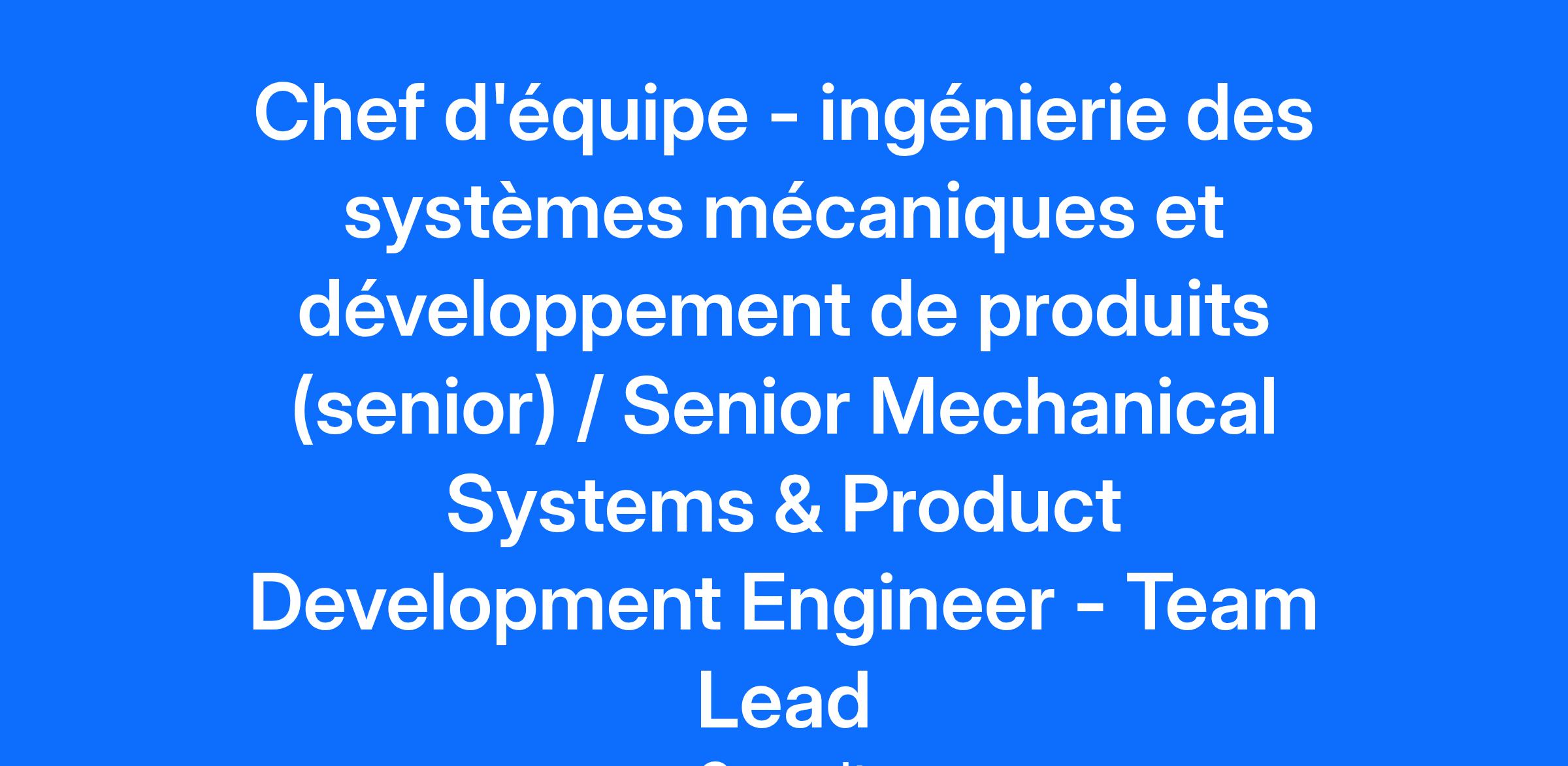 SMARDT Pionnier et leader mondial des refroidisseurs sans huile à haut rendement. L'équipe SMARDT partage plus de 25 ans d'expérience de travail avec l'électronique de puissance, la technologie des paliers magnétiques et les refoidisseurs centrifuges sans huile. SMARDT, dont le siège social est à Montréal, est présent entre autres aux Etats-Unis, en Europe, en Australie, et en Chine. Le poste est proposé pour l'ensemble de nos équipes R&D présente à Montréal, Allemagne, Chine et Australie. Nous recherchons un Ingénieur Senior en Systèmes Mécaniques et développement de produits hautement expérimenté et motivé, possédant une expertise approfondie dans la conception de refroidisseurs (chillers) et le développement de produits à base de réfrigération. Ce poste s’adresse à un ingénieur produit sénior ou un ingénieur systèmes prêt à assumer un rôle de chef d’équipe technique CVC (HVAC). Le candidat retenu jouera un rôle de référent technique et de mentor, en guidant une équipe d’ingénieurs et de concepteurs, tout en contribuant directement à l’ensemble du cycle de vie du produit — conception, prototypage, tests, validation et support terrain — afin de livrer des solutions de refroidissement et de chauffage électrifié de nouvelle génération, écoénergétiques et performantes. Missions principales Conception des Systèmes et Produits Diriger l’architecture système et la conception des refroidisseurs (chillers) et des unités de chauffage électrifié. Fournir une direction technique et effectuer la révision des travaux de conception des membres de l’équipe, en veillant au respect des meilleures pratiques d’ingénierie, des exigences de projet et des normes de l’industrie. Réaliser et examiner les analyses thermodynamiques, d’écoulement des fluides et de transfert de chaleur afin de valider et d’optimiser les conceptions. Superviser la sélection et le dimensionnement des compresseurs, échangeurs de chaleur, pompes, ventilateurs et composants de contrôle pour répondre aux exigences des systèmes. Leadership et Mentorat d’Équipe Agir en tant que leader technique et mentor auprès des ingénieurs mécaniques et des membres juniors de l’équipe. Guider l’équipe d’ingénierie dans la résolution de problèmes, les revues de conception et la prise de décisions techniques. Favoriser un environnement collaboratif axé sur l’apprentissage, soutenant le développement des compétences et l’innovation. Aligner les livrables d’ingénierie de l’équipe avec les objectifs des projets, sans assumer de responsabilités directes de gestion de projet. Prototypage, Tests et Validation Diriger et accompagner les membres de l’équipe dans le développement de prototypes, la planification des tests et les activités de validation. Revoir et analyser les résultats des tests de performance des systèmes. Diriger les activités de dépannage et d’analyse des causes profondes pour résoudre des problèmes techniques complexes. Agir comme référent en ingénierie mécanique au sein d’équipes multidisciplinaires (électrique, automatisation, parties prenantes internationales). Soutenir le développement des fournisseurs et garantir la qualité technique des composants externalisés. Fournir un soutien technique aux équipes de production, de service sur le terrain et de ventes, selon les besoins. Revoir et approuver les documents techniques critiques, les rapports d’essai et les données de performance préparés par l’équipe. Profil recherché Qualifications et compétences requises Baccalauréat en génie mécanique ou dans une discipline connexe. 8 à 12+ années d’expérience en développement de produits/systèmes dans les domaines du CVC, de la réfrigération ou des refroidisseurs. Expertise avérée en conception de systèmes de refroidisseurs, thermodynamique, cycles de réfrigération et intégration de systèmes mécaniques. Capacité démontrée à diriger et encadrer des équipes d’ingénieurs dans un environnement technique. Expérience pratique en prototypage, tests, dépannage et validation de systèmes. Bonne connaissance des normes de conformité internationales (UL, CE, ASHRAE, ANSI, ASME). Excellentes compétences interpersonnelles, avec la capacité de diriger des discussions techniques et de résoudre des problématiques interfonctionnelles. Excellentes aptitudes analytiques, de communication technique et de prise de décision. Maîtrise des outils de CAO et logiciels d’ingénierie, ainsi que de la suite Microsoft Office. Connaissance des systèmes de contrôle CVC et des technologies d’électrification (atout). Capacité à communiquer en français avec notre équipe basée au Québec si le candidat retenu est localisé au Québec. Dans un environnement multiculturel et international, une bonne maîtrise de l’anglais est nécessaire pour interagir avec une partie de notre clientèle et avec les équipes internationales. ------------------------------------------------ SMARDT Pioneer and global leader in high-efficiency oil-free chillers. The SMARDT team brings over 25 years of experience working with power electronics, magnetic bearing technology, and oil-free centrifugal chillers. Headquartered in Montreal, SMARDT also has a presence in the United States, Europe, Australia, and China. The position is offered for all of our R&D teams located in Montreal, Germany, China, and Australia. We are seeking a highly experienced and motivated Senior Mechanical System Engineer with deep expertise in chiller design and refrigeration-based product development. This role is ideal for a senior product engineer or system engineer ready to take on a technical team leadership role within the HVAC industry. The successful candidate will serve as a technical leader and mentor, guiding a team of engineers and designers while contributing directly across the full product lifecycle—concept, design, pr
