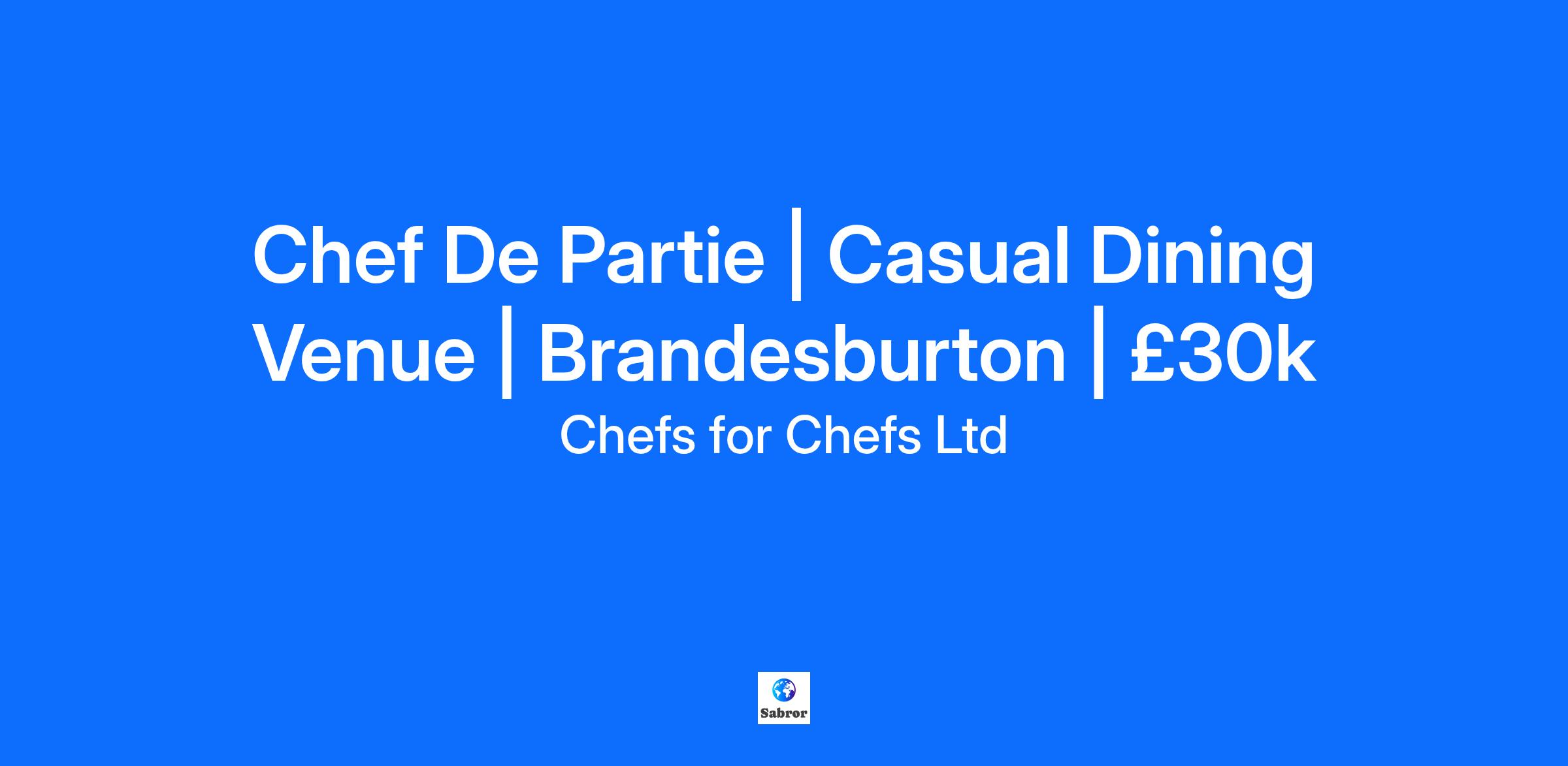 Chef De Partie | Casual Dining Venue | Brandesburton | £30k
