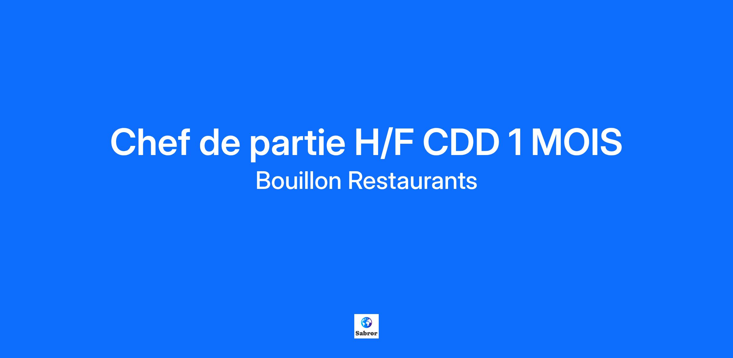 Le Bouillon fait partie d'un Groupe familial dynamique comprenant trois entités majeures : Bouillon Pigalle, Bouillon République et Bouillon Service (vente à emporter et livraison). Ensemble, ces établissements incarnent la tradition des Bouillons parisiens tout en offrant une expérience culinaire contemporaine. Avec une équipe familiale de plus de 300 collaborateurs, nous sommes engagés à offrir à nos clients une cuisine française authentique de qualité dans un cadre chaleureux, animé et typique de la Belle Époque. Bouillon recherche des passionnés pour renforcer ses équipes en cuisine ! Si tu justifies d'une expérience en tant que chef de partie ou demi-chef de partie confirmée, que tu mets le client au cœur de ton métier et aspires à une expérience unique dans la culture traditionnelle des Bouillons, nous avons le poste idéal pour toi. Les missions : En tant que Chef de partie tu seras le bras droit du second de cuisine et du 1er Chef de partie à l'envoi. Dressage des plats Réassort des plats en étuve Vérification des préparations Application des règles d'hygiène et de sécurité en vigueur Mise en valeur des présentations en conformité avec les photopostes Plusieurs rythmes d'horaires proposés : Lundi : repos Mardi : repos Mercredi : 7h - 15h40 Jeudi : 7h - 15h40 Vendredi : 13h40 - 22h00 Samedi : 9h00 - 17h30 Dimanche : 7h - 15h40 Profil recherché : Tu as le souci du travail bien fait Tu es concentré Tu es capable de gérer la pression des rushs pendant les services Tu dégages une bonne énergie Tu garantis une expérience client irréprochable Les avantages : Possibilité d'évolution rapide au sein du Groupe Participation au forfait mobilité durable Prime annuelle, intéressement au chiffre d'affaire Comité d'entreprise ( bons cadeaux... ) Conformément à la législation en vigueur : Prise en charge de 50% du pass navigo Repas sur place (préparé avec soin par notre Chef)