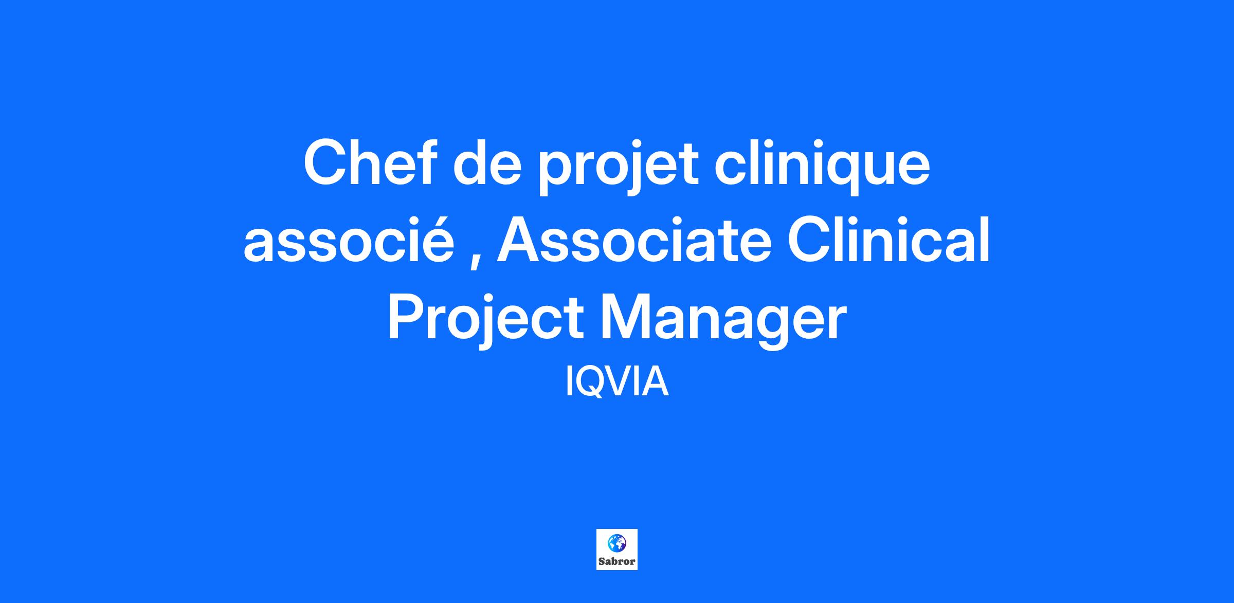 Chef de projet clinique associé , Associate Clinical Project Manager