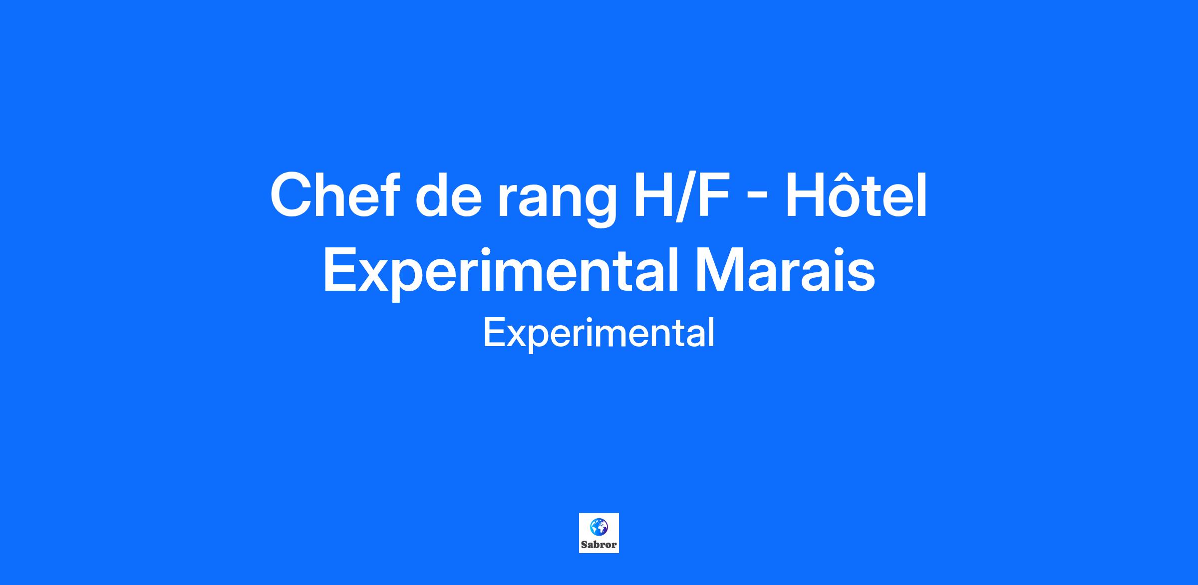 A PROPOS DE NOUS Fondé par trois amis d'enfance Olivier Bon, Pierre-Charles Cros et Romée De Goriainoff en 2007 puis rejoints par Xavier Padovani en 2010, Experimental bouleverse les codes du secteur de l'hôtellerie et de la restauration en offrant une expérience unique d'hospitalité contemporaine à une clientèle exigeante dans le monde entier. Célèbre pour avoir apporté la culture du bar à cocktails à Paris, le groupe exploite des bars à cocktails, mais aussi des bars à vins, des restaurants, et à partir de 2015 des Hôtels. Les destinations se diversifient au fil des années, de capitales européennes comme Paris et Londres, à des lieux plus saisonniers comme Ibiza ou Minorque pour l'été ou les pistes de ski de Verbier et Val d'Isère pour l'hiver. Le groupe possède également des établissements à Venise, New York, Biarritz et les Cotswolds. La philosophie du service est affirmée par trois principes clés : la qualité des produits, la précision du service et l'accueil chaleureux de nos clients. A PROPOS DE L’EXPERIMENTAL MARAIS Rejoignez l’aventure Experimental et faites partie d'une ouverture emblématique ! Nous ouvrons notre premier hôtel 5 étoiles à Paris en mars 2025 : l’Experimental Marais. Situé dans le Haut Marais, cet hôtel d’exception incarne l’élégance parisienne du groupe Experimental, avec un design audacieux signé Tristan Auer et une expérience client unique. Notre établissement de 43 chambres propose : Temple & Chapon, un grand restaurant inspiré des « Chop Houses » américaines, dirigé par la cheffe Mélanie Serre. L’American Bar, un hommage aux bars new-yorkais iconiques avec une carte de cocktails signatures et une sélection de vins prestigieux. Un spa exclusif, conçu en partenariat avec Suzanne Kaufmann, offrant des soins sur-mesure et une piscine. A PROPOS DU POSTE Sous la responsabilité du manager de restaurant et de ses assistants, vous aurez la charge de : Organiser la mise en place des offices et de la salle Garantir l'expérience client Conseiller la clientèle grâce à son excellente connaissance de la carte et des produits Effectuer le service en respectant les règles précises de la profession : prise de commande, mise en place en fonction de la commande, débarrassage, redressage Assurer le suivi de son rang : repasse de pain et boissons, maintient les tables ordonnées et propres pour garantir une expérience agréable Réaliser des opérations de fin de service : rangement, mise en place du prochain service Veiller à maintenir les espaces dans un état optimum (propreté, entretien et état de fonctionnement) Respecter et suivre des standards esthétiques, définis par la direction (grooming, mise en place). A PROPOS DE VOUS Vous avez une expérience réussie en tant que chef de rang ou un poste similaire. Vous avez une excellente présentation, vous êtes dynamique et motivé. Vous avez de bonnes capacités d'organisation et de rapidité d'exécution. Vous disposez d’un bon esprit d’équipe et d’une bonne aisance relationnelle. Vous savez être attentif aux détails et être à l’écoute des clients. La connaissance de micros est un plus. Vous avez la capacité à travailler le soir, les week-ends et les jours fériés. Vivez l’expérience Experimental ! Tout au long de votre expérience, vous serez immergé dans un environnement stimulant et innovant. Vous rejoignez un groupe dynamique et évoluez aux côtés d’une diversité de fonctions et d’experts aux savoir-faire reconnus. Qu'il s'agisse d'un premier emploi ou d'une nouvelle opportunité, nous mettons un point d'honneur à recruter, développer et retenir les collaborateurs les plus motivés et talentueux de tous horizons et compétences. Voici ce que nous pouvons offrir : Opportunités de formations et développement de carrière. Possibilités de mobilité en France, Italie, Suisse, US, UK, Baléares, etc. Discounts attractifs dans tous nos établissements (bars à cocktails, bars à vin & restaurants). Mutuelle avantageuse Kenko, offrant de belles garanties et des services innovants. Remboursement à 50% des transports en commun. Séances de sport à prix réduit (partenariat avec Dynamo). Évènements d’entreprise.