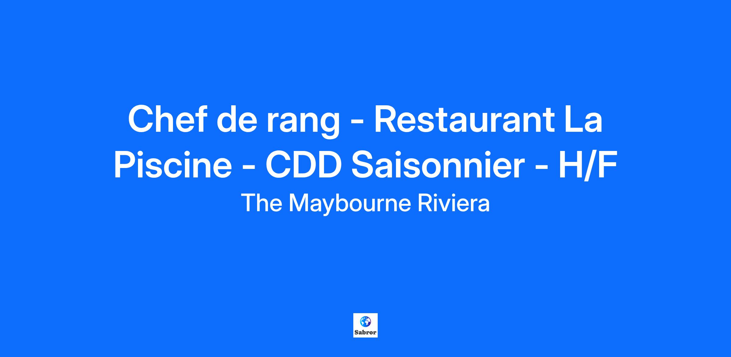 Nous recrutons un.e Chef de Rang au sein de notre inégalable Restaurant La Piscine qui sera en charge :