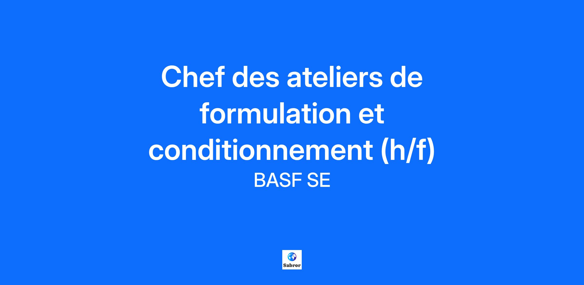 BIENVENUE CHEZ BASF Le monde a besoin d’innovation et nous avons besoin de vous ! Nous créons de la chimie pour un avenir durable et nous cherchons des talents capables d'apporter des réponses aux questions de demain. Intégrez la division Agri Solutions de BASF en France, où nous produisons des solutions agricoles innovantes et durables pour optimiser la productivité des cultures. Découvrez notre site de Gravelines en vidéo. Êtes-vous prêt pour une nouvelle étape dans votre carrière et contribuer au futur d’une chimie toujours plus durable au sein de nos équipes ?VOS PRINCIPALES RESPONSABILITES Sous la responsabilité du Superviseur de Production, le Chef des ateliers de formulation et conditionnement est responsable des moyens de production (hommes, matériel et matières). A ce titre, vous Organisez la production confiée au site de Gravelines en s'adaptant à la demande clients ; Assurez le bon fonctionnement de l’outil industriel et proposez des modifications pour en améliorer la productivité ; Garantissez la qualité constante des productions en appliquant les procédures de process adaptées ; Animez les équipes de production et assurez le suivi d'actions de formations adéquates ; Assurez l'astreinte de production. VOTRE PROFIL Vous êtes diplomé en Chimie avec une experience d'au moins 10 ans en industrie ; Votre anglais est courant (écrit et oral) ; Vous avez une connaissance averée de SAP ; Vous êtes capable de féderer des équipes et d'anticiper ; Vous savez respecter et mettre en application les règles EHS. CE QUE NOUS VOUS OFFRONS Une opportunité stimulante et passionnante dans une équipe engagée et compétente ; Un environnement propice à l'innovation, au partage d'idée et au bien-être ; Un univers qui vous permet de développer votre potentiel dans un groupe international. QUI SOMMES-NOUS ? Agri-Production SAS est une filiale de production de la division Agricultural Solutions au cœur de la stratégie agroécologique de BASF. Le site de Gravelines, dans le Nord de la France, assure la formulation et le conditionnement de 40 types d’herbicides sélectifs liquides pour l’agriculture. Plus de 160 collaborateurs sur site répondent à la problématique liée à la sécurité et à la santé des hommes, à la protection de l’environnement et à la préservation des ressources naturelles.CE POSTE VOUS INTERESSE ? Pour candidater, il suffit de cliquer sur le bouton « postuler » sur cette fiche de poste. Vous devrez alors créer votre profil et ajouter vos documents de candidatures. Cela ne vous prendra que quelques minutes. Nicolas, en charge de ce recrutement, reçoit et analyse toutes les candidatures et enverra un courriel aux candidats présélectionnés pour les inviter à un entretien vidéo MS Teams de 30 minutes.Nous vous souhaitons bonne chance et sommes impatients de recevoir votre candidature ! Seules les candidatures soumises via l’offre publiée sur notre site carrière seront étudiées. Toute candidature reçue en dehors du processus prévu (par e-mail, par exemple) ne sera pas considérée. Pour bien comprendre le processus, vous pouvez vous rendre sur cette page dédiée. Il vous reste des questions ? Vous pouvez nous contacter ici.La diversité est notre plus grande force ! Rejoignez notre formule gagnante et venez développer le futur avec nous - au sein d'une équipe internationale qui encourage l'inclusion et l'égalité des chances indépendemment du genre, de l'âge, de l'origine, de l'orientation sexuelle, du handicap ou des croyances.