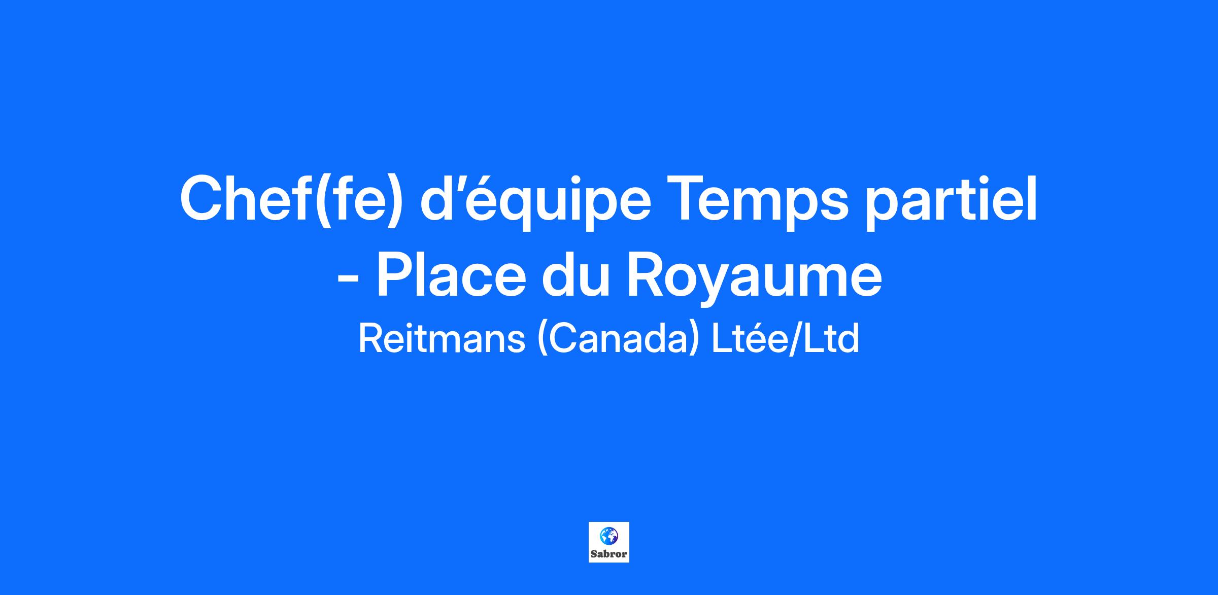 Chef(fe) d’équipe Temps partiel - Place du Royaume