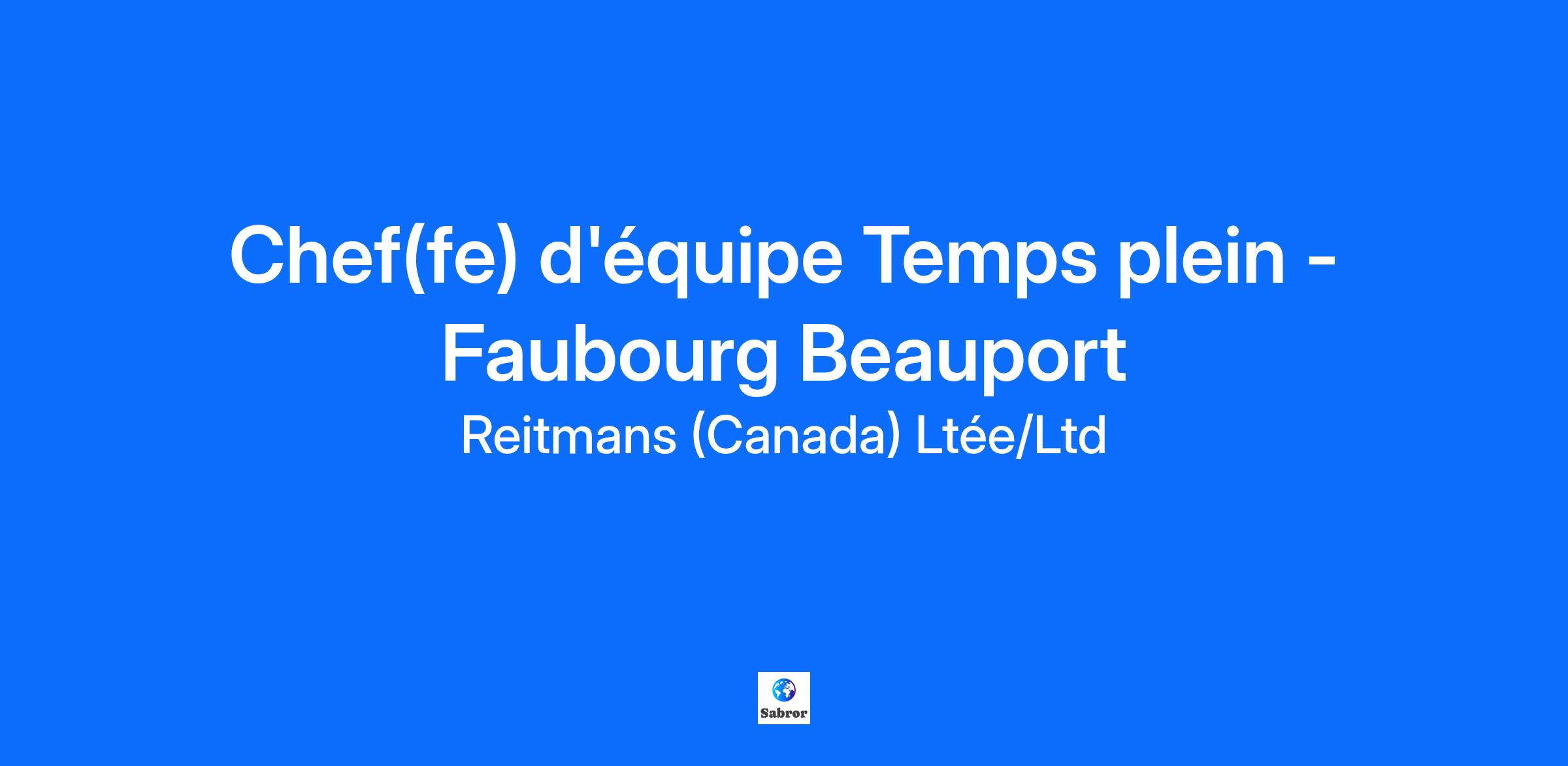 Description de l'entrepriseAvec plus de 230 magasins à travers le pays, Reitmans est le chef de file de la mode féminine canadienne en se faisant le champion de l'acceptation de soi et de l'inclusivité auprès d'une clientèle croissante et loyale. Nous savons que la mode de qualité s'adapte aux femmes de qualité, et non l'inverse. Notre force réside dans notre personnel, alors joignez-vous à une marque créative, accueillante et socialement engagée pour un poste qui te va bien chez Reitmans!Description du posteVous êtes passionné(e) par les dernières tendances de la mode ? Diriger une équipe vous passionne? Alors cette opportunité est pour vous!En tant que chef(fe) d'équipe, vous relèverez du ou de la gérant(e) de magasin et aiderez l'équipe de direction à créer un environnement d'équipe qui favorise des relations positives et inclusives. Vous vous engagerez à assurer le succès du magasin en dirigeant et motivant l'équipe afin d’atteindre les objectifs du magasin, qui comprennent des objectifs de ventes et profits, le recrutement, la gestion de la performance, la formation et le développement. Votre capacité à vous adapter à diverses situations, à l'environnement, aux défis, aux tâches et aux horaires de travail sera déterminante pour votre réussite.Un journée typique (Ce que vous ferez):S'assurer que le magasin atteint les objectifs de l'entreprise et les objectifs des indicateurs clés de performance;Exercer votre leadership pour le magasin en mettant en œuvre les politiques de l'entreprise, les procédures, et en contribuant à la prévention des pertes, la paie, les rapports et la planification;Mettre en œuvre des stratégies de commercialisation tout en offrant un environnement propre, cohérent et accueillant qui incite les client(e)s à faire leurs achats;Entraîner, encadrer et fournir un retour d'information sur-le-champ aux membres de l'équipe;Maintenir une ligne de communication efficace et ouverte avec la gérance du magasin et la direction du district.QualificationsQui vous êtes (Ce que vous apporterez):Au moins 6 mois d'expérience de direction et/ou de supervision dans un environnement axé sur l'expérience client.Avoir de l'expérience dans la mobilisation d'une équipe vers un objectif commun.Être titulaire d'un diplôme de fin d'études secondaires ou d'un certificat d'équivalence d'études secondaires.Capacité à mener plusieurs tâches de front dans un environnement au rythme rapide tout en s'engageant à créer une expérience client exceptionnelle.Capacité à travailler le soir et le week-end.Informations supplémentairesCe que nous offrons (Pourquoi travailler avec nous)?Taux à l’embauche de 17.90$ (le taux peut être plus élevé en fonction de l'expérience acquise)Un ensemble d'avantages compétitifs (employés à plein temps seulement).Congés payés (congés de maladie, jours flexibles et vacances (employés à plein temps seulement).Parmi les autres avantages, citons la possibilité d'une prime mensuelle, les possibilités d'avancement et le remboursement des frais de scolarité.50% de réduction sur toutes les marques de Reitmans (Canada) Limited. (, Reitmans, RW&CO. & PENN.)Politique généreuse de recommandation des employésSi cela vous inspire... discutons-en. Envoyez-nous votre CV dès aujourd’hui! À propos, saviez-vous que Reitmans (Canada) Limitée possède plus de 400 succursales partout au Canada et trois bannières de vêtements de mode? Préparez-vous à rejoindre l’icône de la mode au détail au Canada, forte d’une riche histoire de réussite, où vous pourrez faire entendre votre voix et laisser votre marque. Chez RCL, optez pour un poste qui vous va bien! Reitmans (Canada) Limitée est un employeur garantissant l’égalité des chances. Nous nous engageons à offrir un lieu de travail diversifié et inclusif pour tous. Nous reconnaissons que notre succès futur dépend des perspectives et des contributions de tous(tes) nos employé(e)s – leurs antécédents, capacités et expériences diversifiées renforcent notre entreprise. Si vous êtes contacté(e) pour une offre d’emploi, veuillez nous informer de tous les aménagements nécessaires pour assurer un accès juste et équitable tout au long du processus de recrutement et de sélection. Toutes les informations fournies concernant les aménagements seront traitées de manière confidentielle et utilisées uniquement pour assurer l’accessibilité aux candidat(e)s. Nous remercions toutes les personnes qui poseront leur candidature. Seul(e)s les candidat(e)s sélectionné(e)s seront contacté(e)s.
