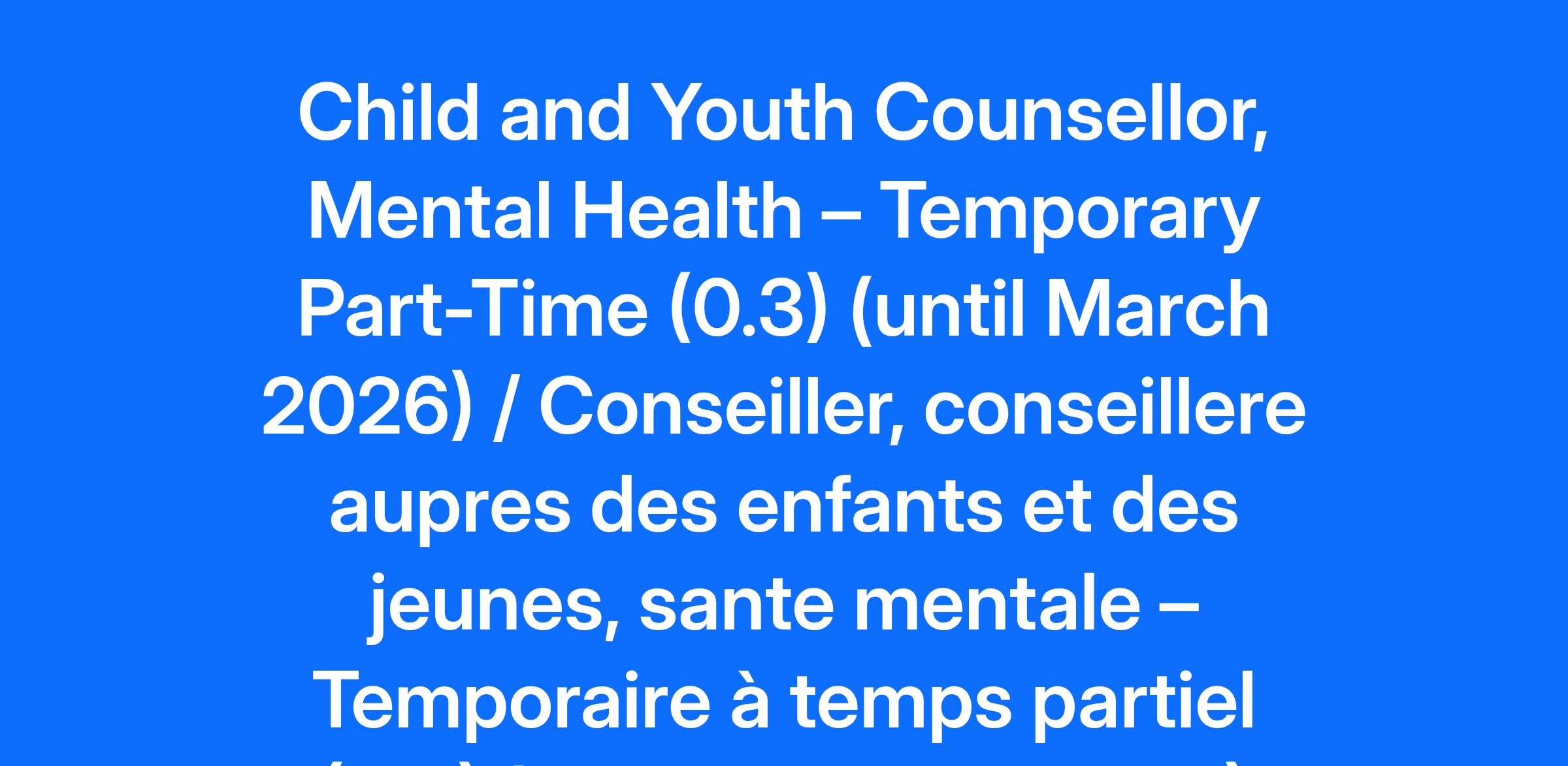 Compensation Pay Range: $35.04-$43.00 Job Description: Please Note: If you are a current CHEO employee with access to Workday, please apply to this posting via the Workday application as an internal applicant using the Jobs Hub. To successfully apply for this position, please submit your application by 11:59 pm the day before the advertised closing date in the posting to ensure your application is received. Ottawa is built on un-ceded Algonquin Anishinabek territory. The peoples of the Algonquin Anishinabek Nation have lived on this territory for millennia and we honour them and this land. Their culture and presence have nurtured and continue to nurture this land. CHEO also honours all First Nations, Inuit and Métis peoples and their valuable past and present contributions to this land. CHEO is one of the few stand-alone, global leaders in pediatric health and is home to more than 6,500 staff, clinicians, scientists and researchers, as well as volunteers – all of whom work together to help children and youth achieve their best lives. Within its own walls and through partnerships with community providers, CHEO has transformed from a 20th century acute care hospital into a 21st century integrated child and youth health system. Ranked in the top 1% of Canadian hospitals for the digitization of its clinical infrastructure, CHEO combines excellence in clinical care, research, and education to advance seamless care that’s provided where, when, and how it is needed. CHEO’s Research Institute is dedicated to world-class clinical, translational, and basic science research covering a wide range of children’s health concerns. CHEO has been named Canada’s best health-care employer by Forbes in 2024 and 2025 and is ranked second among Canadian hospitals on its list of Canada’s Best Employers for multiple consecutive years. For the 14th consecutive year in a row, the editors of Canada's Top 100 Employers has recognized CHEO as a top employer in the National Capital Region. Every year CHEO helps more than 500,000 children and youth from Eastern Ontario, western Quebec, Nunavut and Northern Ontario. POSITION SUMMARY The Child and Youth Counsellor will be a part of the multidisciplinary team that offers crisis intervention and multidisciplinary assessments for children and adolescents who have complex and severe mental health issues in programs across the MH PSU. JOB DESCRIPTION Assess, plan, implement and evaluate the care for Program Patients and families. Participate as a member of an interdisciplinary team. Develop programming and activities for the inpatient unit and day treatment programs. Offer support /counselling to individual patients and their families. Provide appropriate learning experiences for the patient and family. Offer mentoring experiences for students and new staff. QUALIFICATIONS Vulnerable Sector Check (Essential) Graduate of a three-year community college program in Child and Youth Counselling (Essential) Eligible for certified membership in the Ontario Association of Child and Youth Counsellors (OACYC) (Essential) Experience in paediatric psychiatry (Essential) Certification in CPR and First Aid (Essential) Demonstrated excellent team work and interpersonal skills (Essential) Knowledge of mental health treatment modalities (Essential) Bilingualism (French and English) (Preferred) *Timeline may be extended or shortened based on operational needs * Please note you will be represented by the Ontario Public Service Employees Union (OPSEU). Please note that this position will be based out of Ottawa. Please note that location may be subject to change at any time at the discretion of the employer. All OPSEU members shall be granted an interview upon passing the pre-screening. Pre-screening might include testing. Effective March 29, 2021, CHEO will conduct a more comprehensive pre-screening and evaluation process. This process may include more varied and multidimensional testing such as a written test, practical exam, or other assessment. All candidates who meet the essential and preferred qualifications may be tested. CHEO values diversity and is an equal opportunity employer. We are committed to providing an inclusive and barrier-free work environment, starting with the hiring process and welcome interest from all qualified applicants. Should you require accommodation during any phase in the recruitment process, please contact Human Resources at TalentAcquisition@cheo.on.ca. All information received in relation to accommodation will be kept confidential and will be handled in compliance with the Accessibility for Ontarians with Disabilities Act. Bilingualism (French/English) will be validated by a language proficiency assessment conducted by a third party provider. Candidates will be required to meet the minimum linguistic profile prior to the date of hire. CHEO is committed to providing a safe environment for staff, patients, and visitors. Consistent with that commitment, all applicants must be fully vaccinated against COVID-19 to be considered for any staff or volunteer opportunities. Applicants are also strongly encouraged to receive their COVID-19 booster shots when eligible to protect against the spread of COVID-19. Upon hiring, presentation of government issued documentation confirming full vaccination must be provided, or presentation of supporting documentation of a valid medical contraindication or other reasonable consideration pursuant to the Ontario Human Rights Code. We thank all those who apply, however, only those to be interviewed will be contacted. Veuillez noter : si vous êtes actuellement un employé du CHEO ayant accès à Workday, veuillez postuler à cette offre via l'application Workday en tant que candidat interne. Veuillez noter : pour postuler avec succès à ce poste, veuillez soumettre votre candidature avant 23 h 59 la veille de la date de clôture annoncée dans l'affichage pour vous assurer que votre candidature est reçue. Ottawa est bâtie