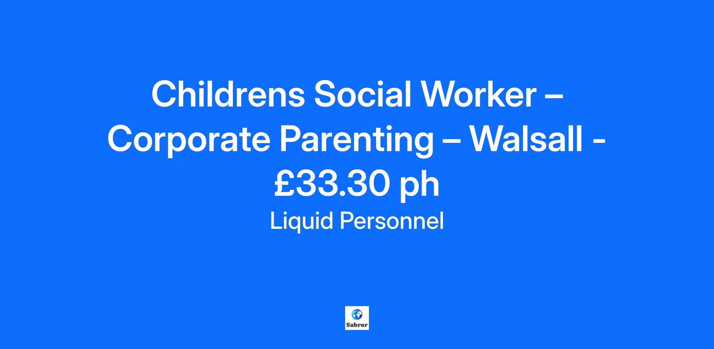 Job Title: Children's Social Worker – Corporate Parenting Location: Walsall Rate: £33.30 per hour A Children's Social Worker is required to join Walsall’s Corporate Parenting Service. This is a great opportunity to be part of a close-knit team. What will your responsibilities be? You will provide comprehensive social work support within the Corporate Parenting framework, manage a caseload of 8-10 children and young people, act as a senior member of the team, engage in safeguarding court work, and collaborate with other agencies to promote the welfare and safety of children. Benefits: Competitive rate of pay Hybrid working A stable and established team who have been recognised by Ofsted Regular support/supervision Opportunity for progressive professional development Access to training materials Long-term contracts available Qualifications and Experiences: To be successful in this role, you must have Social Work England registration, be eligible to work in the UK, hold a full UK license, have post-qualified experience (minimum of 3 years’ experience in corporate parenting or safeguarding court work is essential), and hold a degree level or equivalent in Social Work. How to apply? If this job is for you, feel free to click apply below or if you want to learn more about it, please contact 0345 241 9590. Why Liquid Personnel? New ‘Faster Pay’ service getting you paid more quickly Twice weekly payroll Free DBS and compliance service Access to exclusive roles that aren’t available from other agencies Free access to Liquid’s exclusive social work training and CPD portal Your own dedicated consultant with extensive social work knowledge Access to a wide selection of social work positions across the UK “Refer a Friend” bonus – get £500 for each social worker you refer who we successfully place* “Find your own job” bonus – get £250 for bringing your own position to us * Liquid Personnel is an equal opportunities employer. Liquid Personnel Ltd is acting as an Employment Business in relation to this vacancy. *Terms and conditions apply to our bonus schemes. Reasonable Adjustments: We are unable to support or accept applications from candidates who are residents within the Red or Amber list of the Code of practice for the international recruitment of health and social care personnel in England, based on the World Health Organisation (WHO) Workforce Support and Safeguard List. BH- 186018 GH - 25832