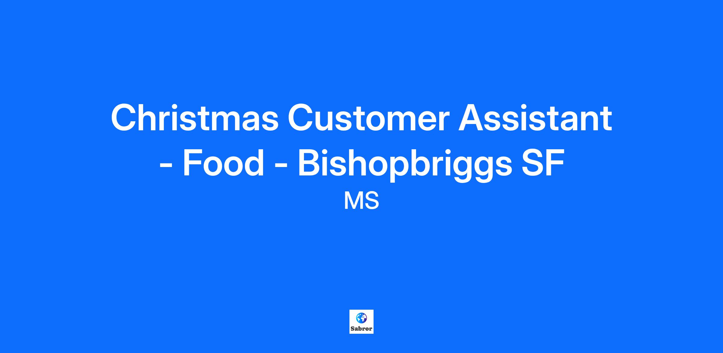Christmas Customer Assistant - Food - Bishopbriggs SF