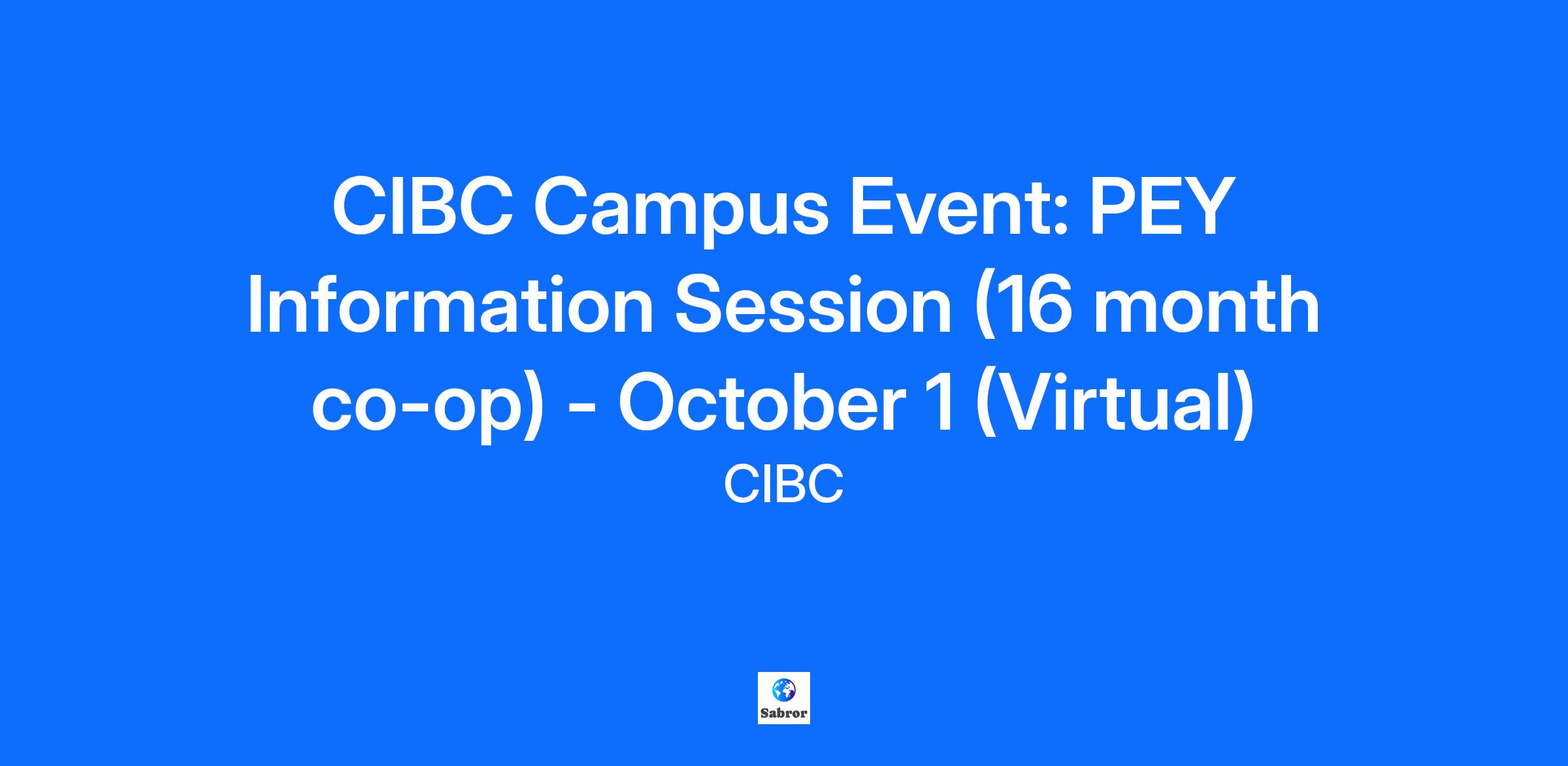 CIBC Campus Event: PEY Information Session (16 month co-op) - October 1 (Virtual)