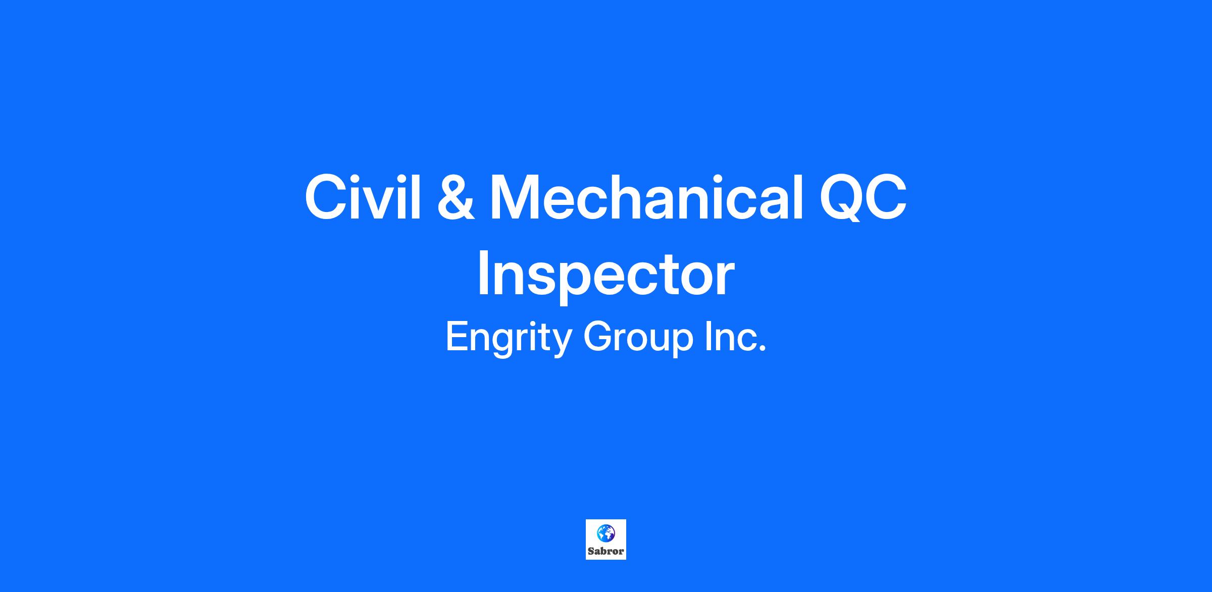 Title: Civil & Mechanical QC Inspector (Lead Experience Preferred)