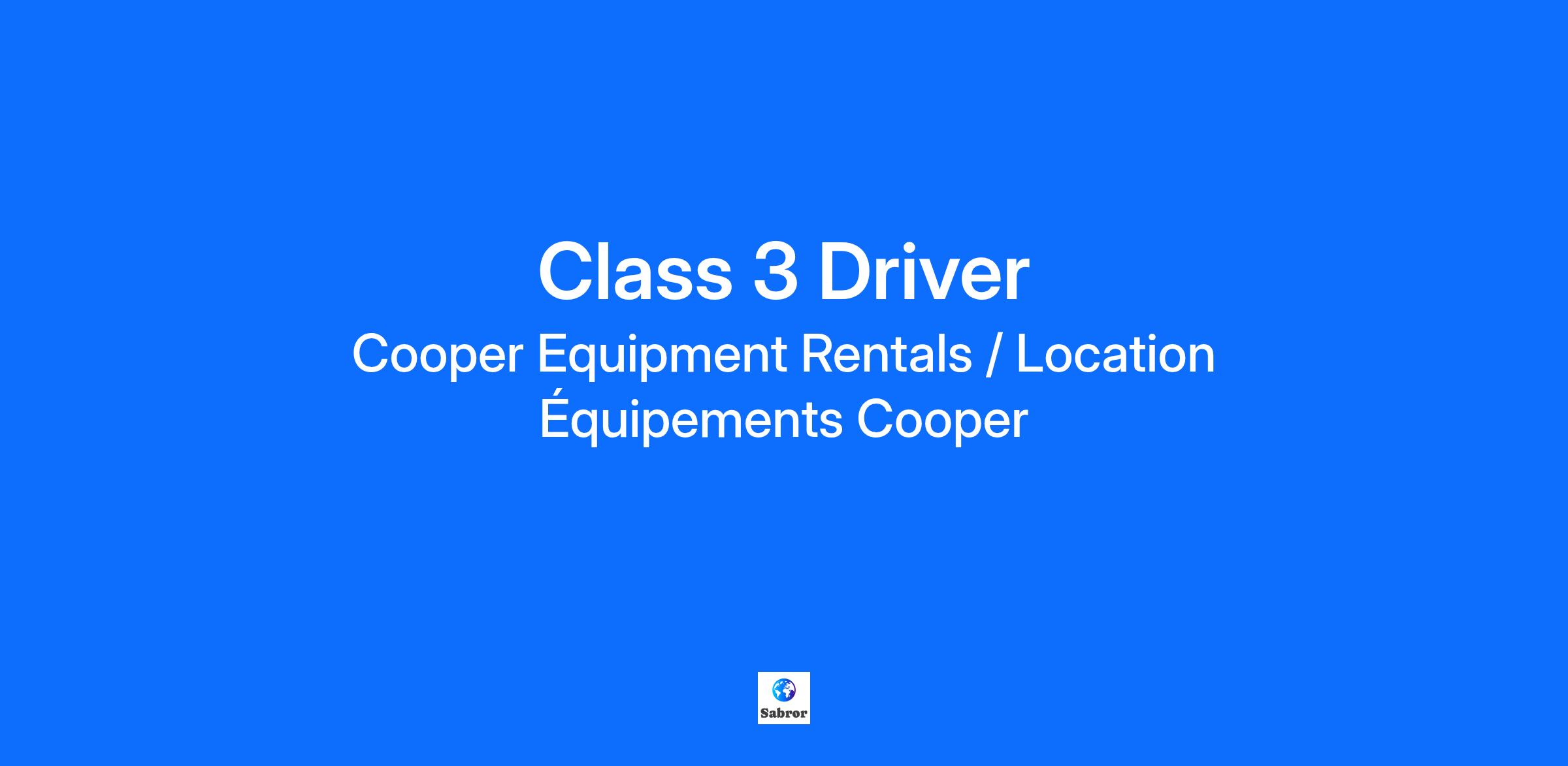 Build your Career at Cooper Equipment Rentals We are looking for customer-oriented, motivated individuals to join our professional team. Please note, to be considered for this position applicants should currently be residing in Canada and legally entitled to work. Why Work with Us? Perks! Competitive salary, with overtime available Excellent benefit package with premiums paid by the company Uniform, safety boots/shoes, safety gear provided RRSP Match Safety-minded organization Stable, year-round employment Continuous training, learning and development opportunities Fun-loving work environment with strong social responsibility What You'll be Doing Duties and Responsibilities Perform equipment deliveries and pickups. Complete the required documentation. Inspect equipment for damage upon return, report issues, and fill out service tags for all returned equipment. Follow all safety rules. Ensure the truck is maintained and in proper working condition. What You'll Bring to the Team Requirements and Qualifications Valid Class 3 license; excellent driving record. Able to work with minimal supervision and strong team spirit. Highly customer-service oriented and enjoys working in a fast-paced environment with strict deadlines. Demonstrates safe work habits. Available to work overtime. Want to learn more about this as well as other opportunities at Cooper? Visit our Careers page to view Day in the Life videos cooperequipment.ca/careers. We passionately believe that our inclusive and diverse team is key to the success of our business. We are dedicated to building an environment where everyone has an equitable opportunity to thrive, and where diversity, equity and inclusion is celebrated and embraced. We strive to hire diverse talent and to ensure that everyone feels safe, respected, and valued during the hiring process and throughout their journey with us. To continue the conversation, or if you require accommodations, reach out to our team at careers@cooperequipment.ca. #SJ1