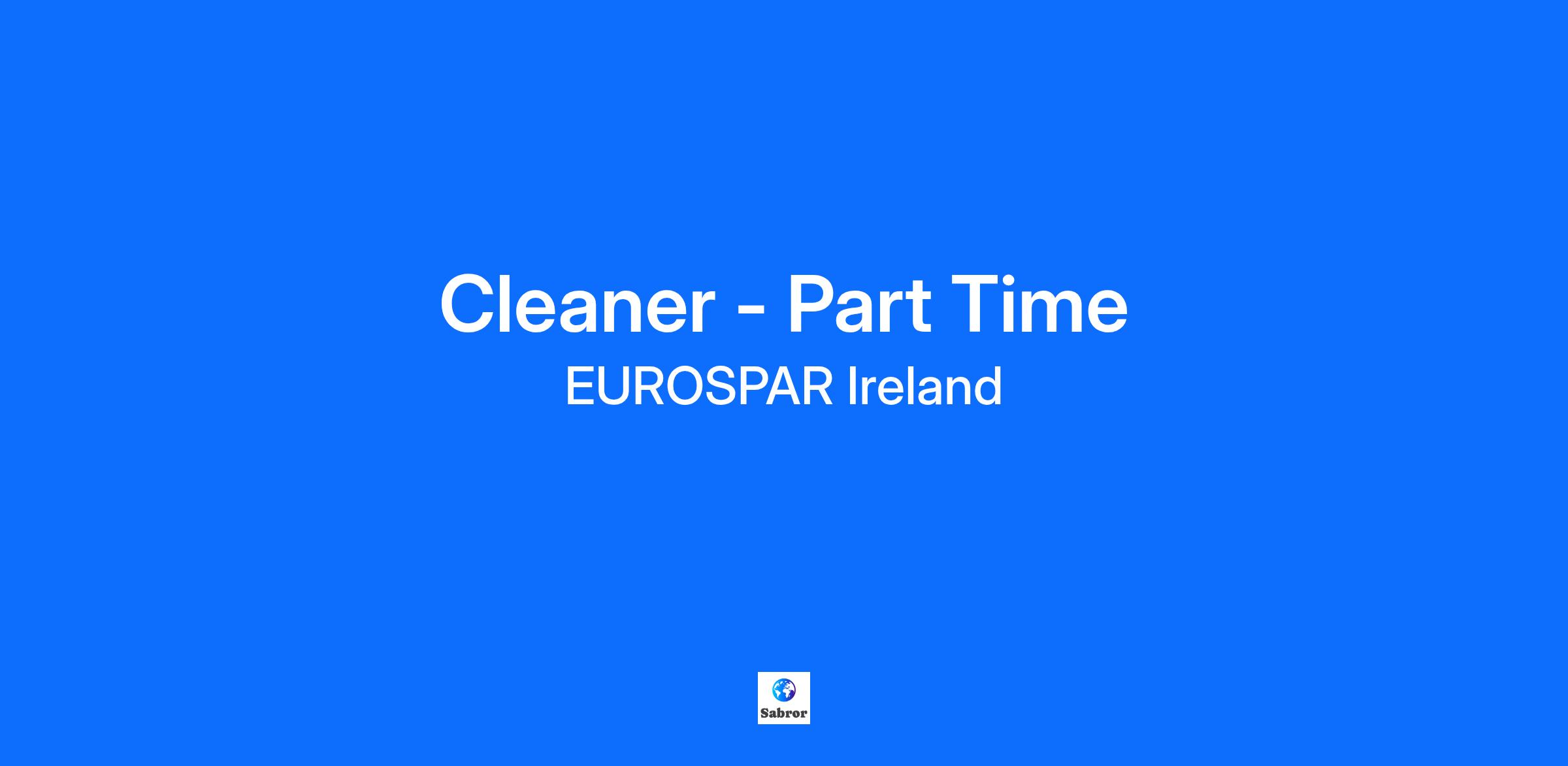 EUROSPAR Hartstown require a part time Cleaner to join their amazing team. Shifts: Monday to Friday 7am - 11am Duties include: Carrying out cleaning duties as outlined in the cleaning schedule and complete daily / weekly cleaning checklists for all cleaning tasks performed Following company waste management procedures Following company Health & Safety procedures Benefits: Competitive Rate Uniform Provided Commitment to structured Training & Development Internal transfers & promotion opportunities Great working environment Previous experience in a similar environment Competency in English language Good organisation skills and manages time well Ability to work on own initiative