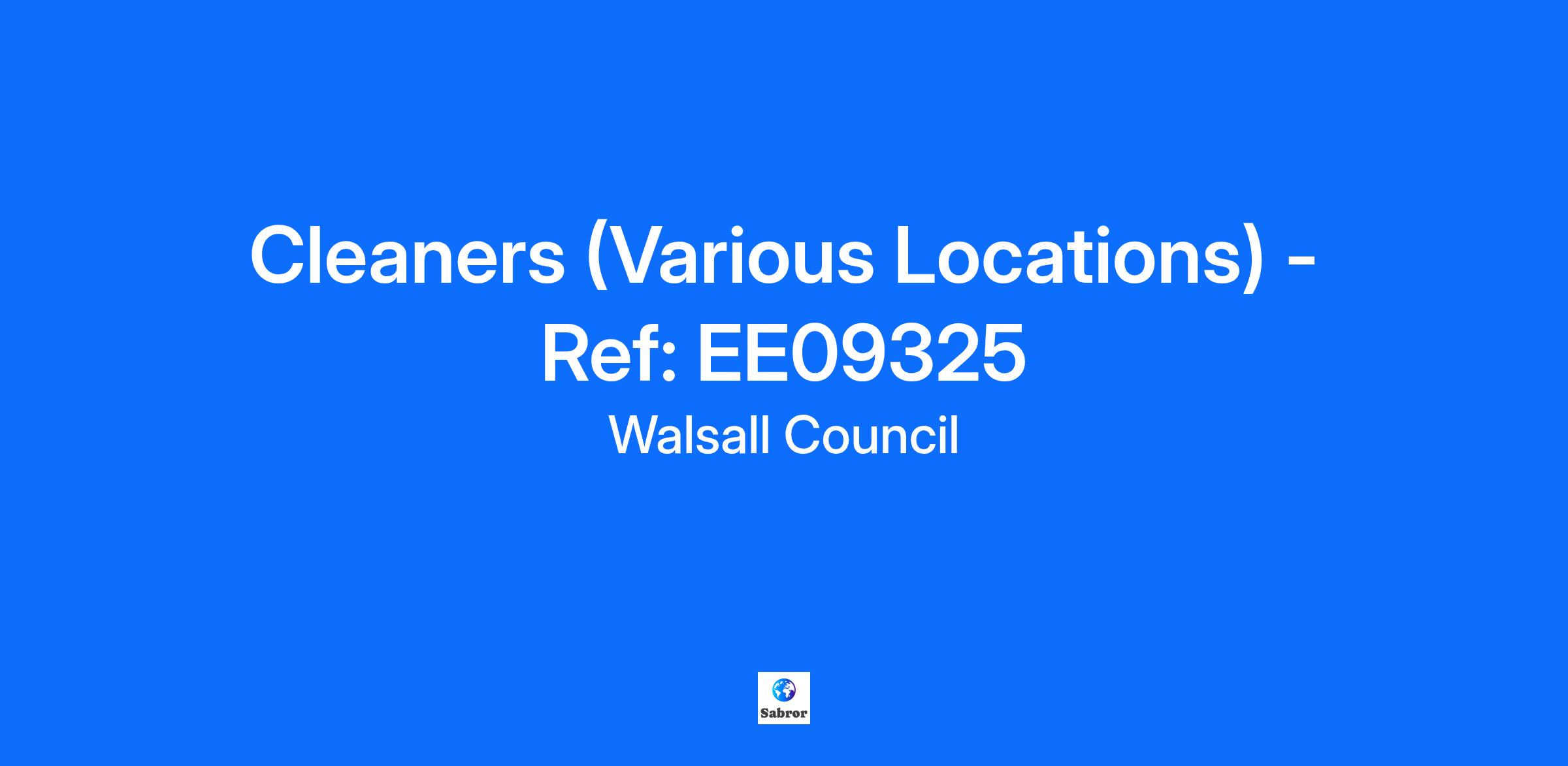 Cleaners (Various Locations) Ref: EE09325 Salary G2 £12.65 - £13.05 per hour Do you have experience in cleaning commercial buildings? Do you want to be part of a friendly, supportive and valued team of Cleaners? If the answer is yes, join us now and see the excellent pay and benefits we have to offer. What are we looking for? We require hardworking, reliable, enthusiastic and motivated cleaners to join our team at various locations within the borough- in return, we offer excellent pay and holiday entitlements. About the job- duties will include: Vacuuming, Sweeping, Washing, Polishing, Dusting, Emptying litter bins, Deep cleaning Using powered equipment as required. About you: The successful candidate must have an understanding of the safe use of cleaning chemicals/machinery. You will need to ensure the required standards of cleanliness and presentation are maintained within our schools and outlying buildings. You will be expected to follow all operating procedures to ensure that health and safety requirements are maintained at all times. Interested? - see our current vacancies below and apply today and join our fabulous team of cleaning professionals, where no two days are ever the same: Details of positions: Streetly School x4 Hours per week: 16hrs - Start Time: 3.30pm x3 Hours per week: 10hrs - Start Time: 6.45am (39 x weeks per year) Lindens Primary School Hours per week: 10.30hrs - Start Time: 3.30pm (38 x weeks per year) Blue Coat Infant School Hours per week: 10hrs - Start Time: 3.30pm (39 x weeks per year) Meadow View Primary School x4 Hours per week: 12.15hrs - Start Time: 6.00am Hours per week: 7.30hrs - Start Time: 6.00am Hours per week: 10.30hrs - Start Time: 6.00am Hours per week: 12.15hrs - Start Time: 3.30pm (39 x weeks per year) Alumwell Infant School Hours per week: 11.15hrs - Start Time: 3.30pm (40 x weeks per year) St Thomas of Canterbury Hours per week: 11.30hrs - Start Time: 3.30pm (38 x weeks per year) Walsall Wood Primary School Hours per week: 10hrs - Start Time: 3.30pm (39 x weeks per year) Whetstone Fields Primary School x2 Hours per week: 12.30hrs - Start Time: 3.15pm Hours per week: 11.00hrs - Start Time: 3.15pm (39 x weeks per year) Posts are covered by the Government’s Code of Practice on the English Language Fluency Duty for public sector workers. Walsall Council is committed to safeguarding and promoting the welfare of children, young people and adults and expects all staff and volunteers to share this commitment. Completion of a DBS (Disclosure and Barring Service) check may be a requirement of this post. Closing Date for applications: 20th November 2025 View: Job Description and Employee Specification Information for Applicants Important note: When completing your online application form, you will be asked to enter supporting information. You must enter a detailed supporting information statement describing how your skills, abilities and experience meet the specific criteria included in the employee specification. If you do not include a supporting information statement, you will not be shortlisted. Please also ensure that you complete the work history and qualifications sections of your application form. Please do not add a CV as we do not accept them. See our Information for Applicants leaflet for further information. We kindly request that recruitment agencies do not contact us regarding this job vacancy. We are not accepting Agency applications or referrals at this time