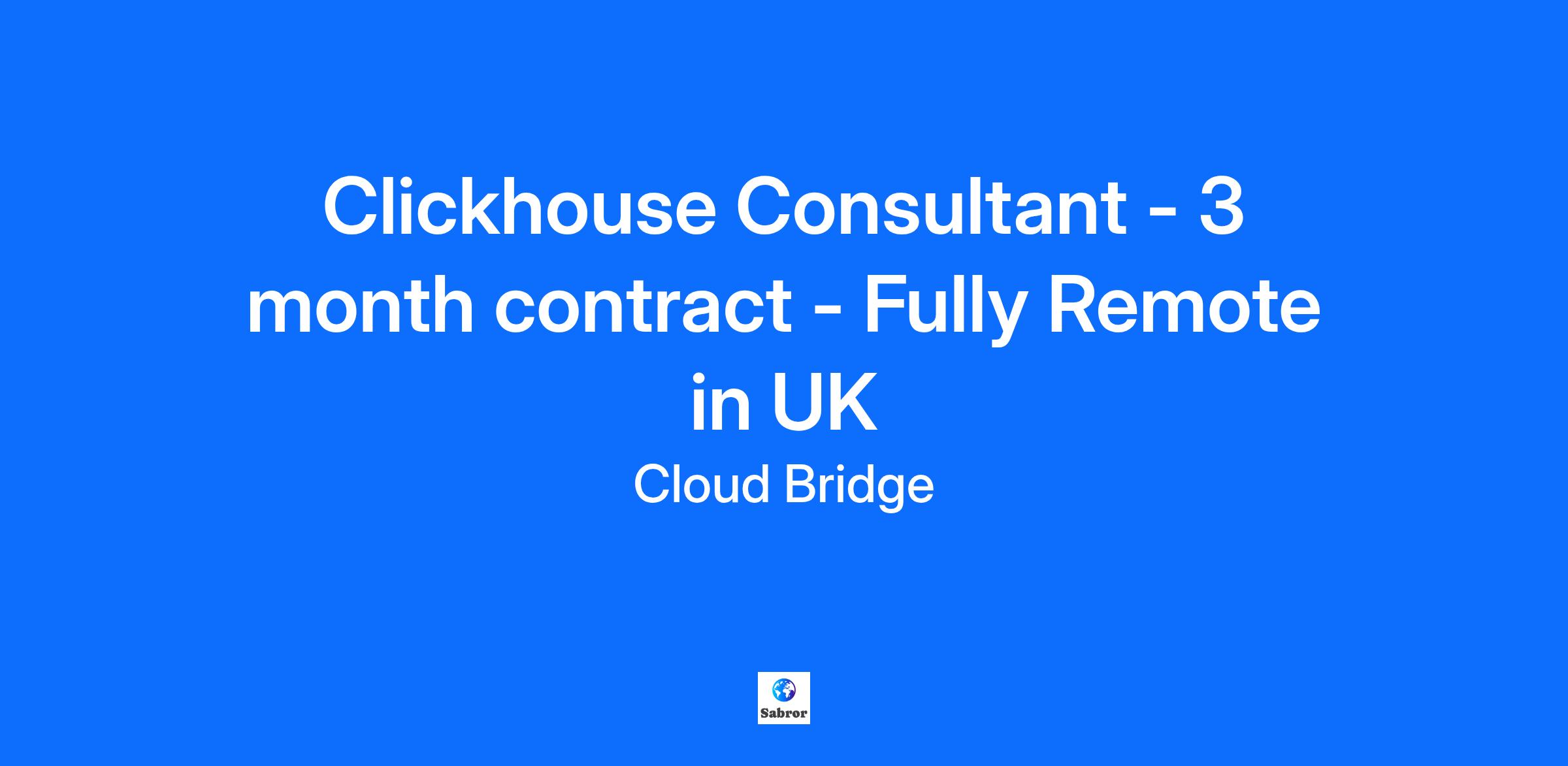 Clickhouse Consultant - 3 month contract Fully Remote in UK or Europe Outside IR35 (if in the UK) Working for a client of CBTR, you must have the following skillset: Clickhouse expertise Focus on building real time analytic systems based on Clickhouse database Customer facing, stakeholder management Ability to engage in Pre-sales and Design conversations To discuss, please apply to the role.