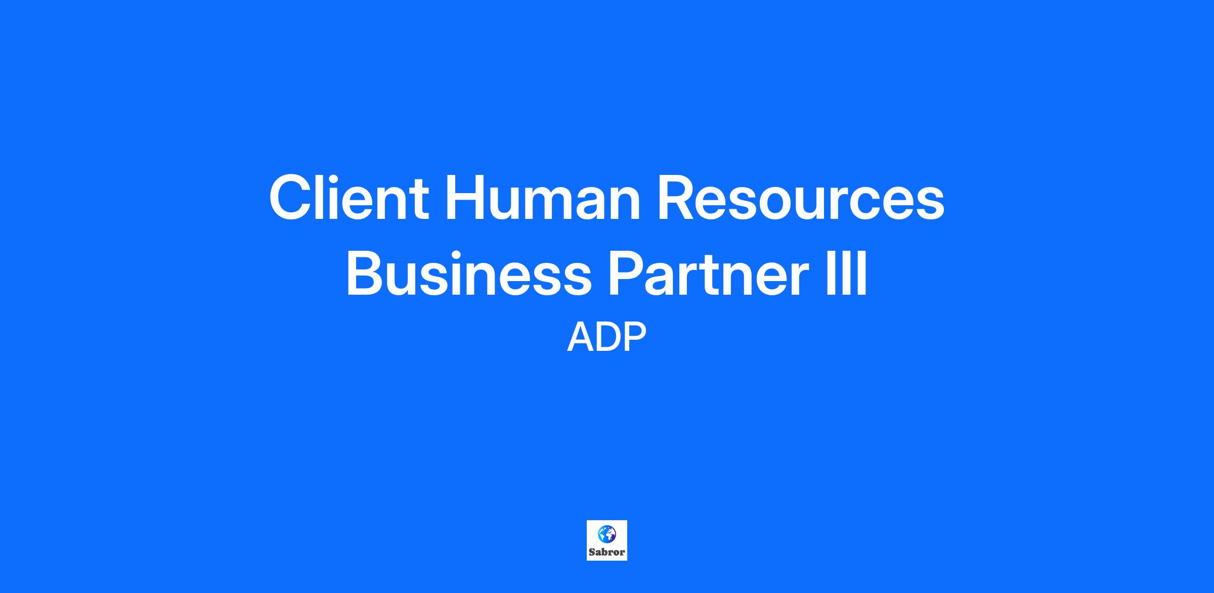 This position is a virtual home-office opportunity for VA, MD, or D.C., supporting clients across the DMV area. ADP is hiring a Client Human Resources Business Partner III. * Are you ready to join a company offering career advancement opportunities throughout your career journey? * Do you want to join a company with award-winning training and world-class service guidelines to help you achieve success, growth, and continued learning? * Are you looking for an inclusive environment with a culture of collaboration and belonging? If so, this may be an opportunity for you. Read on and decide for yourself. In this role, you'll be a trusted advisor to our clients, using your HR experience, ADP product expertise, and consulting skills to solve their most critical business challenges. You carry the weight of ADP's service reputation and client satisfaction in your hands. The nature of what you do every day will not change -- your #1 goal is to help clients. Still, every day will be different because the questions you receive will vary, as will the solutions you provide each client. There will be no shortage of new questions you'll receive, which will keep things interesting, and our top-ranked training will help to set you up for success! To thrive in this role, you must be comfortable building relationships with external clients and internal partners. You have a way with clients that builds rapport, establishes trust, and shines with professionalism. Over the phone and in writing, your communication style is clear and easy for our clients to understand and take action on. As a result, your client satisfaction scores make you proud. Pace should not scare you. We also have a healthy dose of fun. Not only can you find a career here but friendships that last in a company that values inclusion. Ready to #MakeYourMark? Apply now! To learn more about Client Services at ADP, watch here: https://adp.careers/Client_Services_Videos [https://adp.careers/Client_Services_Videos] WHAT YOU'LL DO: Responsibilities What you can expect on a typical day: Research, Troubleshoot, and Resolve. You will serve as an HR expert to ADP's largest clients and support ADP's most complex products/technologies. You will solve client problems -- taking a broad perspective to identify solutions. You will work independently to resolve issues. You will also work proactively with clients to provide information, best practices, and training on ADP solutions. Communicate and Exceed Client Expectations. You will use your strong interpersonal skills, HR, and ADP product knowledge to communicate with clients and resolve issues. You will set priorities, organize your day, multi-task, change direction, and provide prompt follow-up. You will strive to exceed client expectations in every interaction. You hold yourself to the highest ethical standards and live ADP's core value of Integrity is Everything. Provide Recommendations and Educate. You will interpret internal or external business issues and recommend solutions/best practices to ADP leadership and clients. You will share knowledge and best practices with less experienced Consultants and Specialists at ADP. TO SUCCEED IN THIS ROLE: Required Qualifications * At least 5-8 years of professional consulting experience or equivalent experience as a practitioner in a systems-related organization * At least 5-8 years of experience in a customer service or human resources environment, with proven ability to produce positive results A college degree is great but not required. What's more important is having the skills to do the job. If you don't have a college degree, other acceptable experiences could include: * Experience noted above, OR * Military Experience. We recognize and appreciate the unique talents and experiences Veterans bring to the table. We value the discipline, commitment, and problem-solving abilities you have developed and are excited to provide an environment where you can continue to make a meaningful impact. Qualifications BONUS POINTS FOR THESE: Preferred Qualifications * HR Certification or willing to pursue in the first year YOU'LL LOVE WORKING HERE BECAUSE YOU CAN: * Be yourselfin a culture that values equity, inclusion, and belonging and creates a safe space for diverse perspectives and insights. * Belong by joining one of our Business Resource Groups to connect globally with networks and allies who share common interests and experiences. * Grow your career in an agile, fast-paced environment with plenty of opportunities to progress. * Continuously learn through ongoing training, development, and mentorship opportunities. * Be your healthiest.Best-in-class benefits start on Day 1 because healthy associates are happy ones. * Focus on your mental health and well-being.We're here to provide exceptional service to our clients, and none of that happens without each of us taking care of ourselves and being there for one another. * Join a company committed to giving back and generating a lasting, positive impact upon the communities in which we work and live. * Get paid to pay it forward.Company-paid time off for volunteering for causes you care about. What are you waiting for? Apply now! Jobs.adp.com